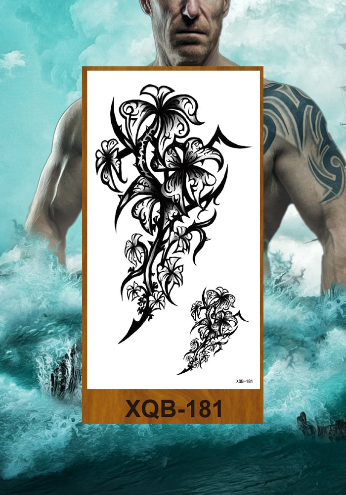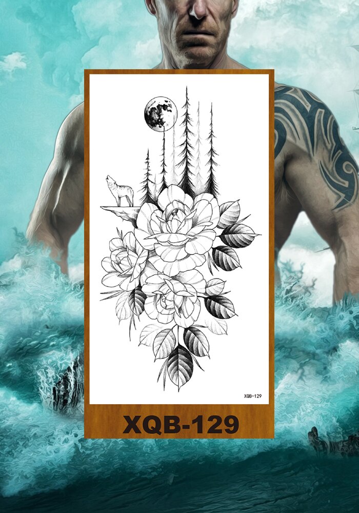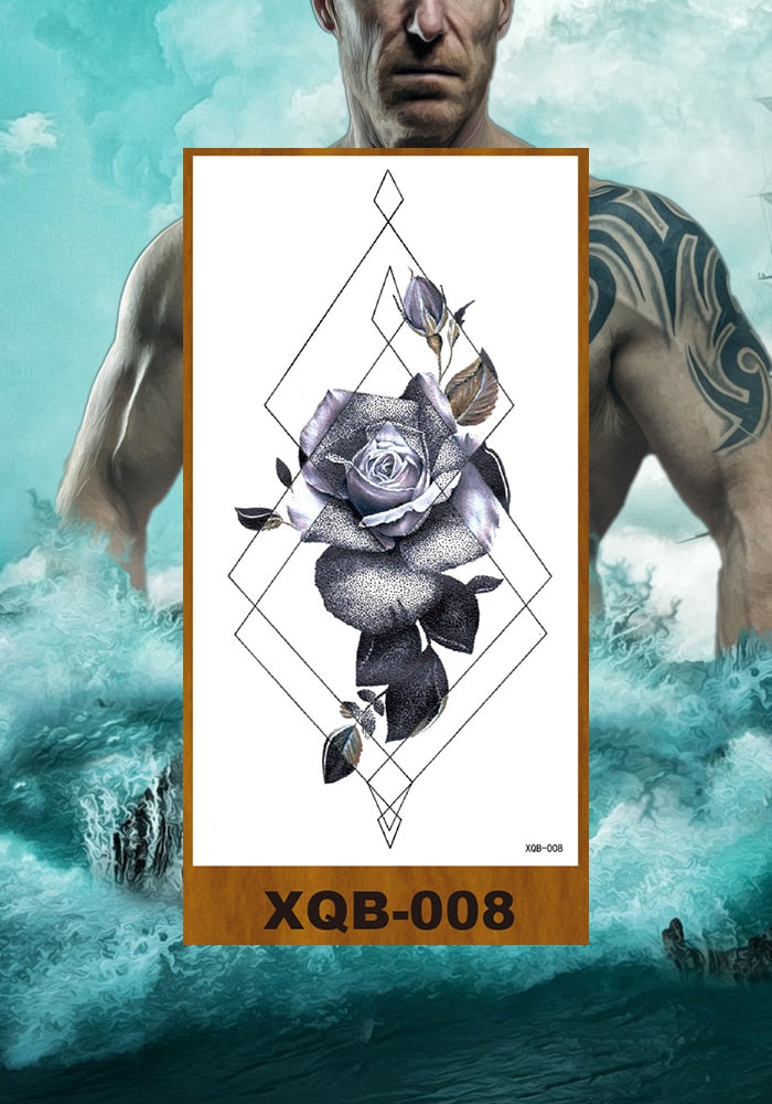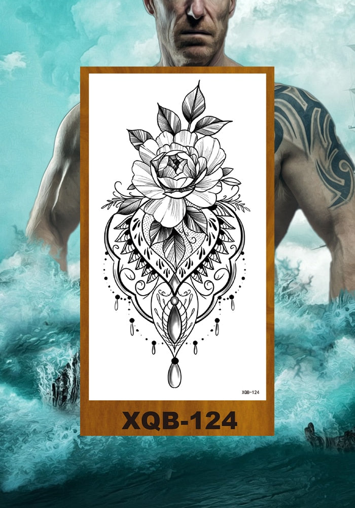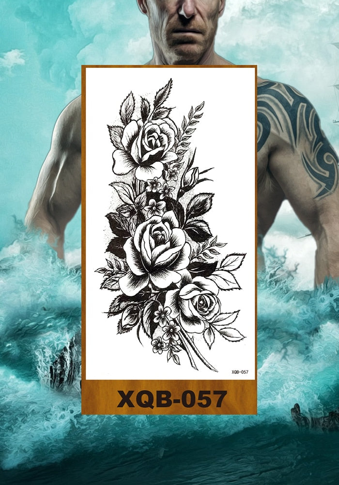 Temporary Tattoos Stickers Women Girl Chest Arm Fake Tatoo Lotus Peony Rose Magnolia Flowers Totem Face Body Makeup Waterproof