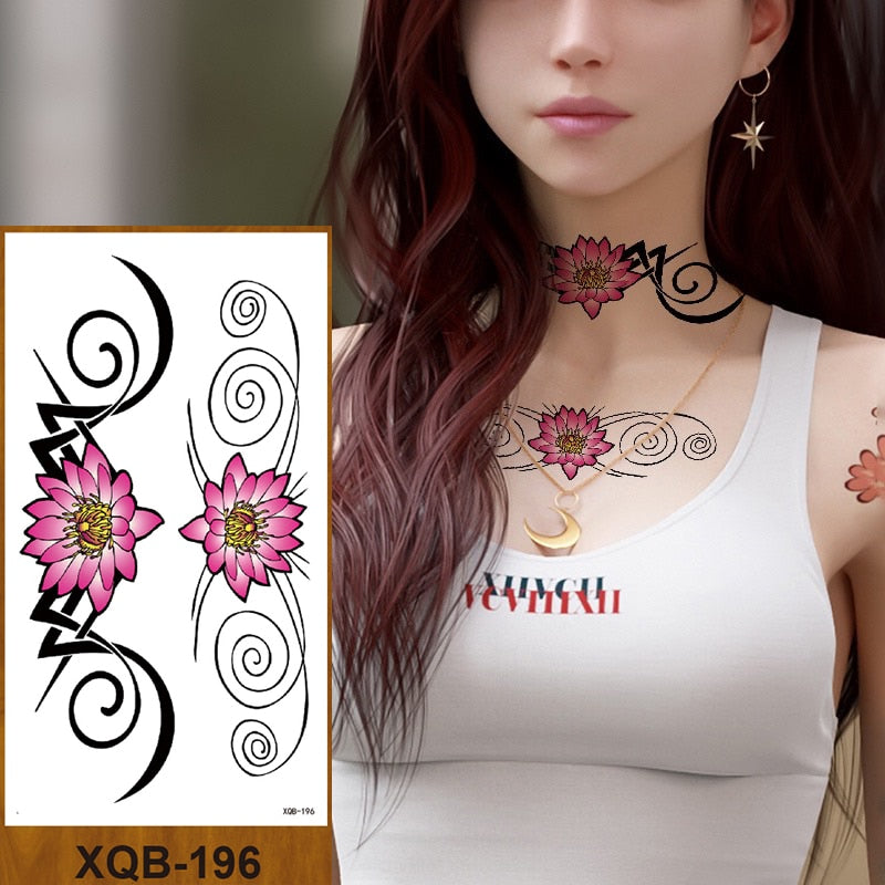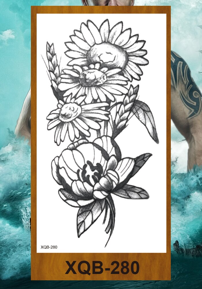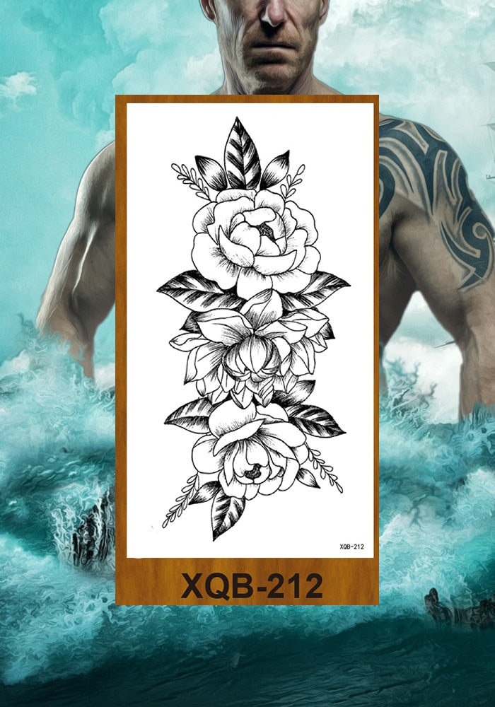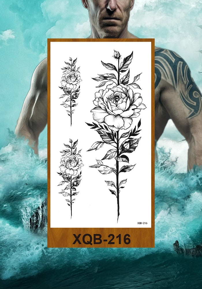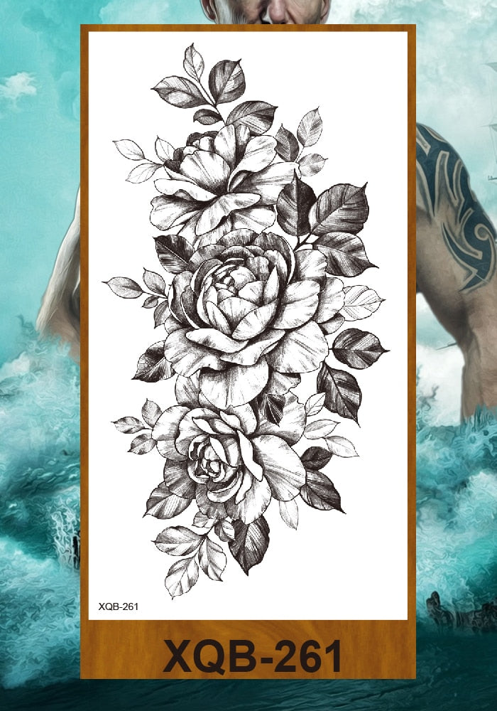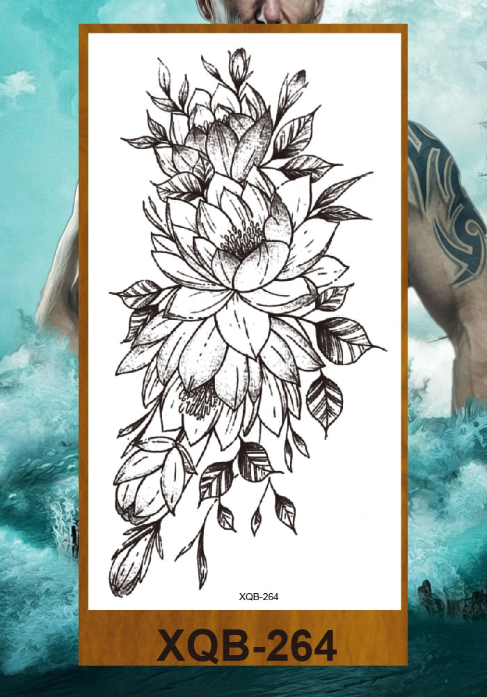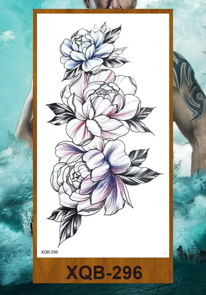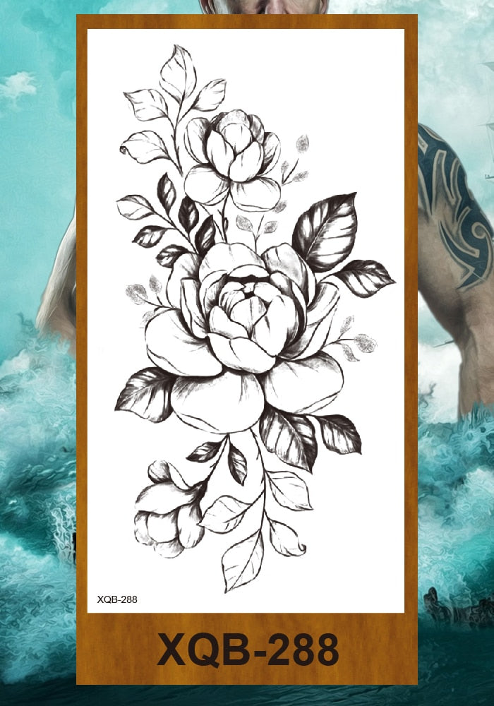 Temporary Tattoos Stickers Women Girls Arm Waist Buttocks Chest Art Fake Tatoo Sexy Flower Bush Peony Rose Lily Body Face Jewels