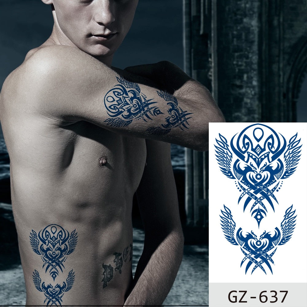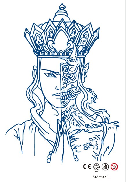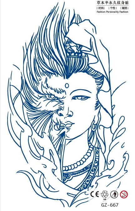 Temporary Waterproof Tattoo Stickers Ancient Chinese God of War Totem Thinker Juice Ink Men Women Girl Chest Arm Body Fake Tatoo