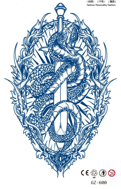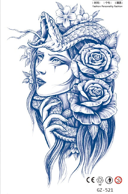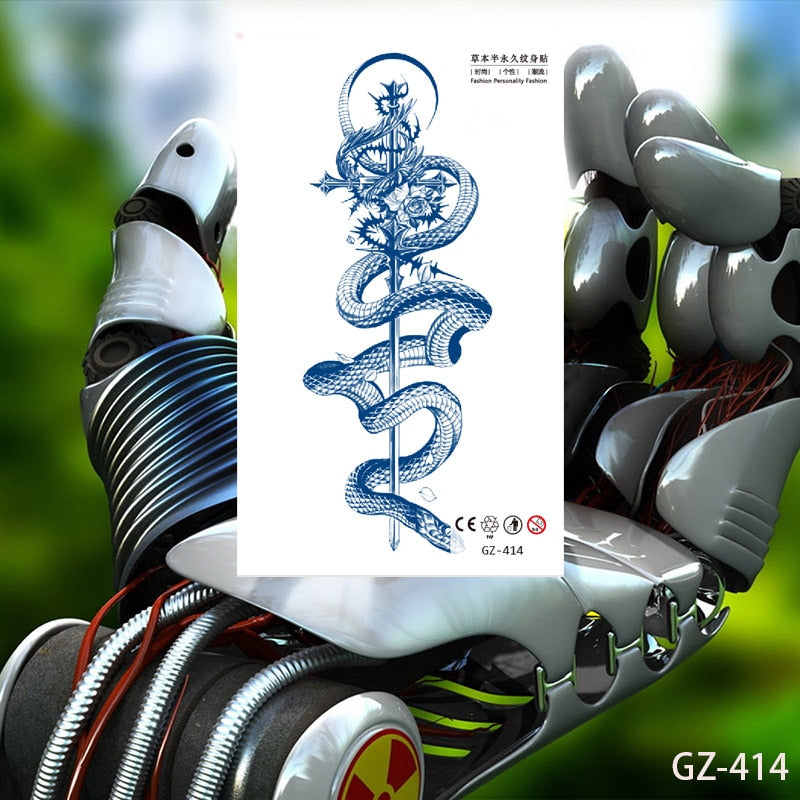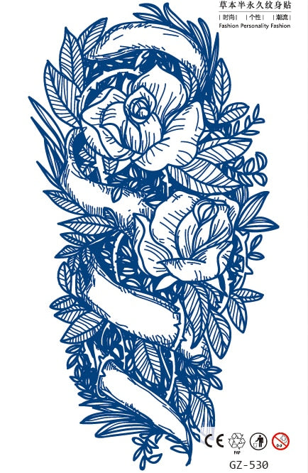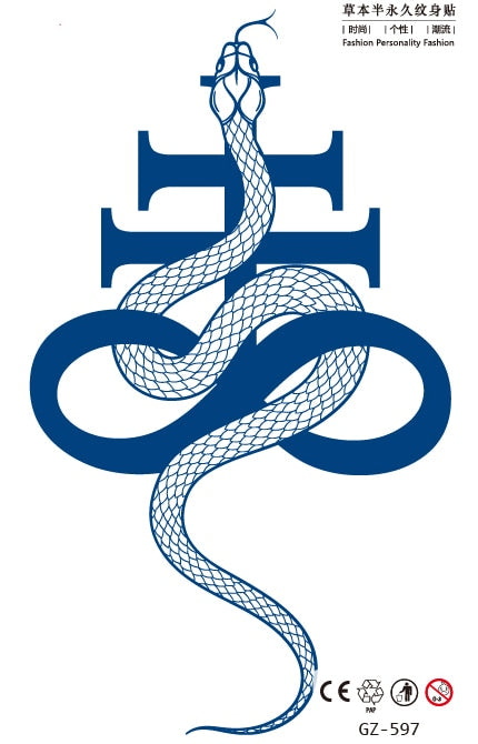 Temporary Waterproof Tattoo Stickers Seductive Snake Flower Ink Lasting Sexy Girls Arm Chest Waist Buttocks Realistic Fake Tatoo