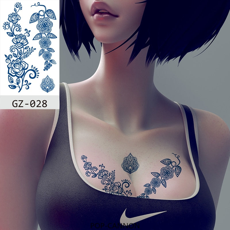 Temporary Waterproof Tattoos Stickers Creative Necklace Flowers Juice Ink Lasting Sexy Girls Arm Neck Waist Buttocks Fake Tatoo