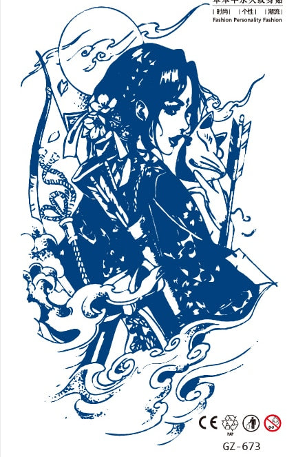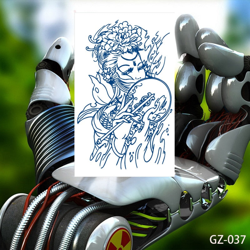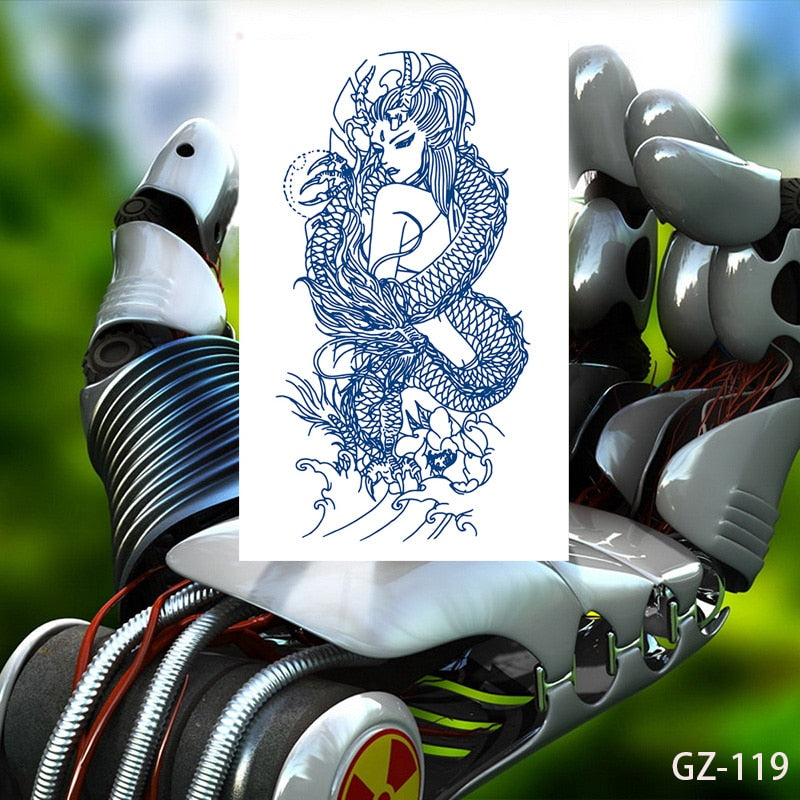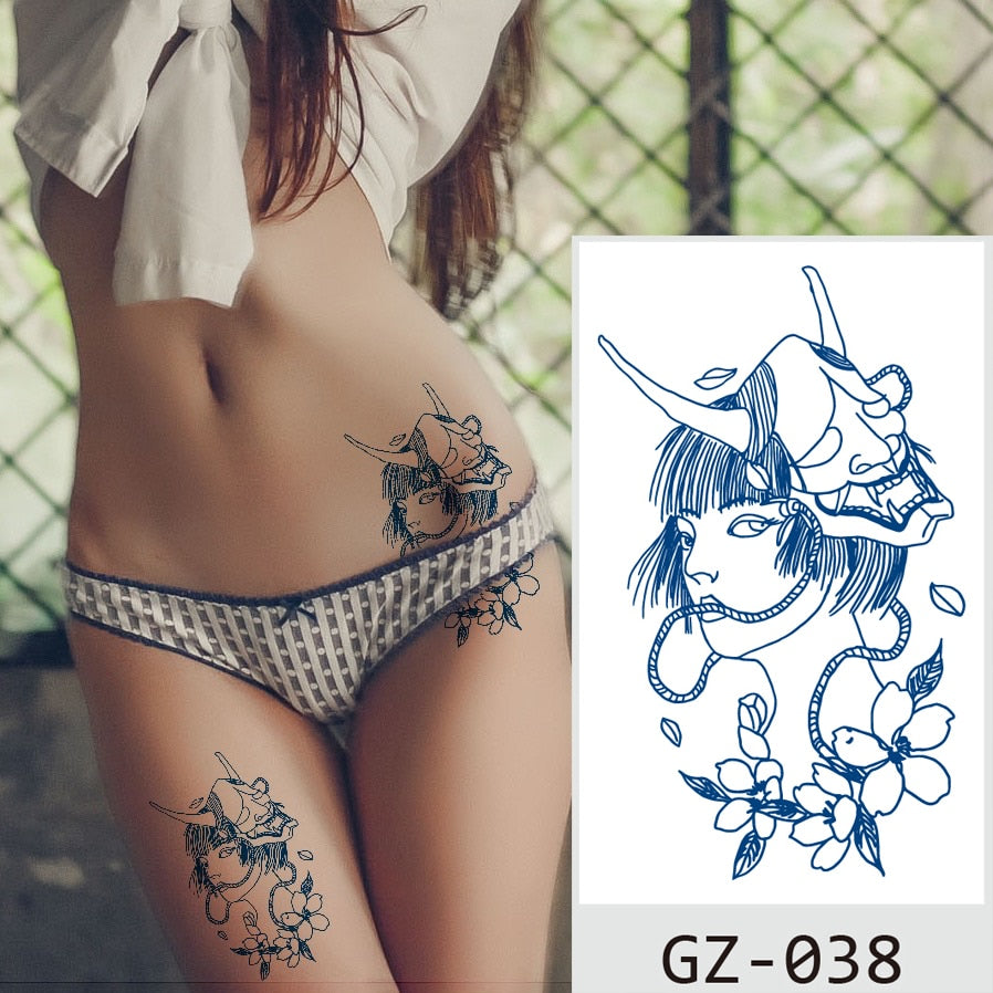 Temporary Waterproof Tattoos Stickers Sexy Mythical Dragon Girl Fox Mask Juice Ink Lasting Arm Back Body Buttocks Fake Tatoo DIY