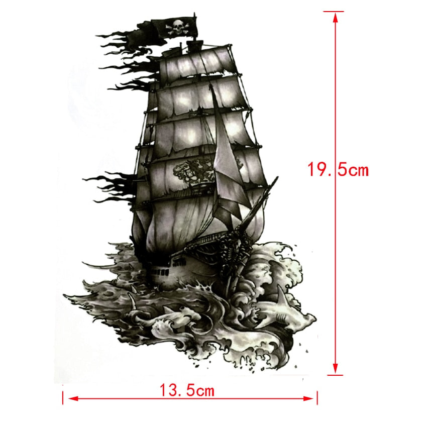 The Black Pearl Pirate Ship Waterproof Temporary Tattoos harajuku men Fake Tattoo hand made sticker Henna Tatoo sleeve tatuajes
