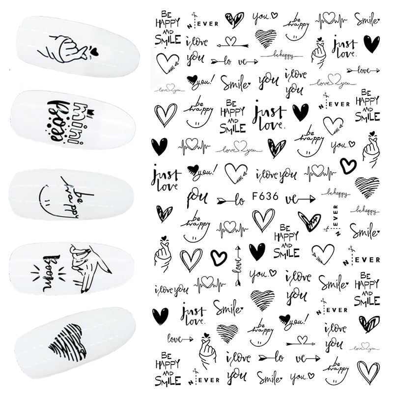 The New 3D Nail Sticker Cool English Letter Stickers For Nail Foil Love Heart Design Nails Accessories Fashion Manicures Sticker
