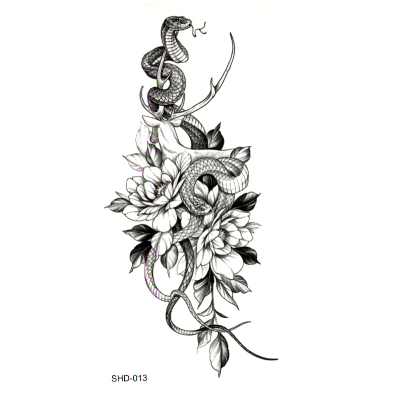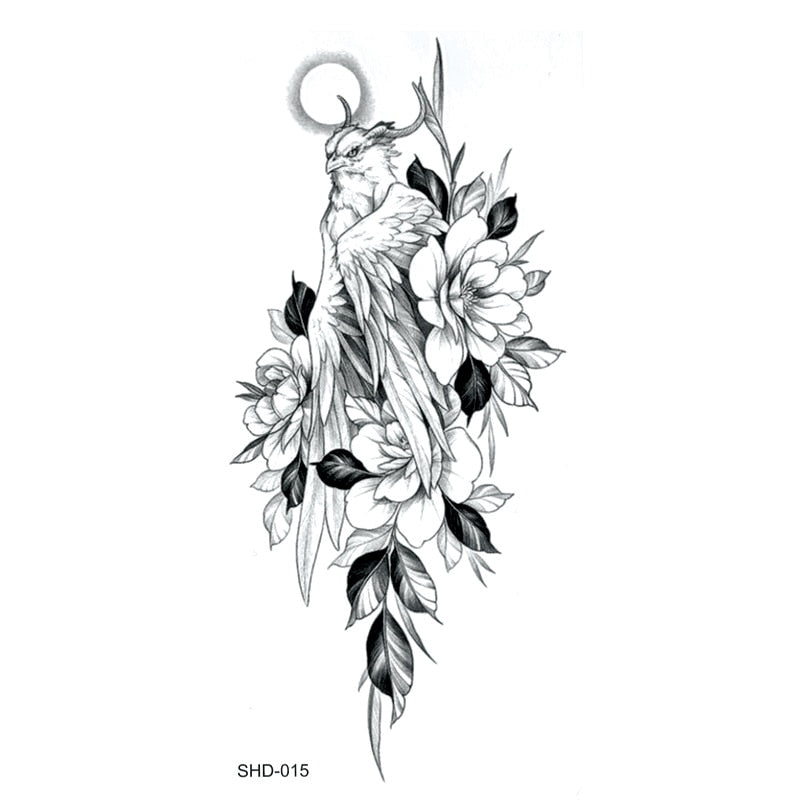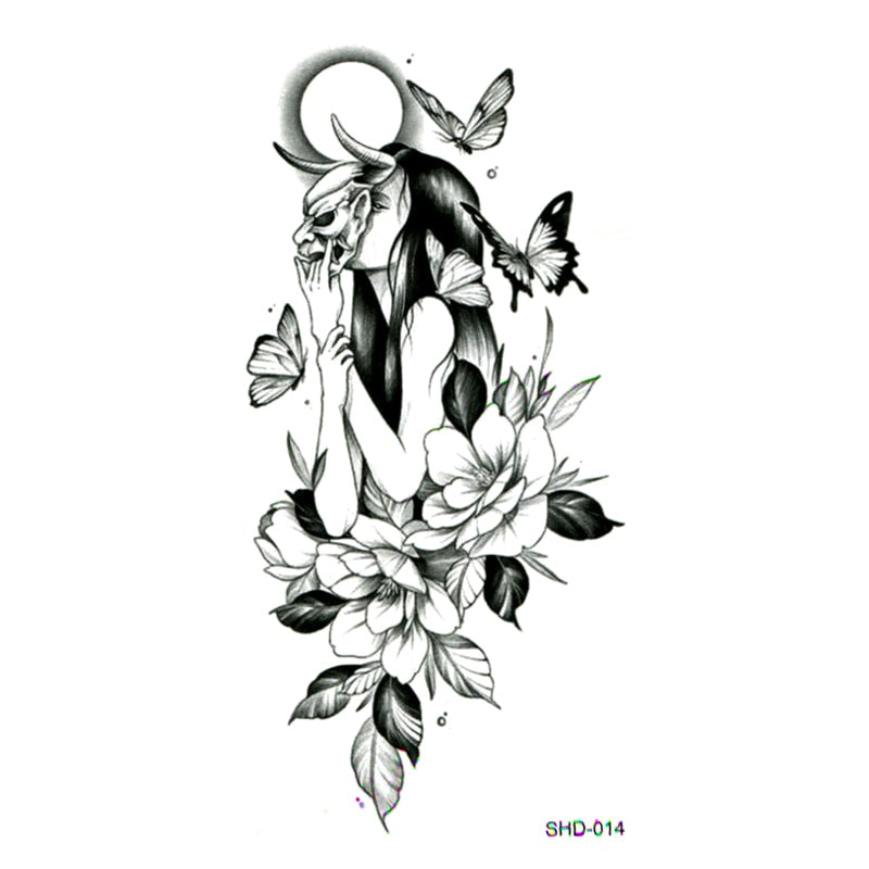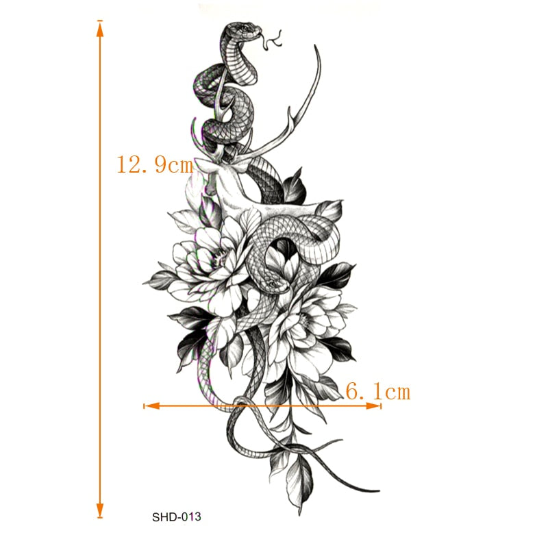 Three styles Grey Flower/bird/ghost Women/snake Waterproof Temporary Tattoos Men Temporary Tatoo Sticker Fake Tattoo Sleeves