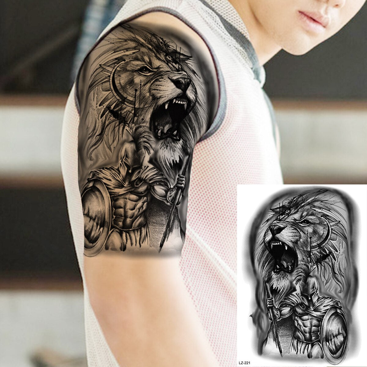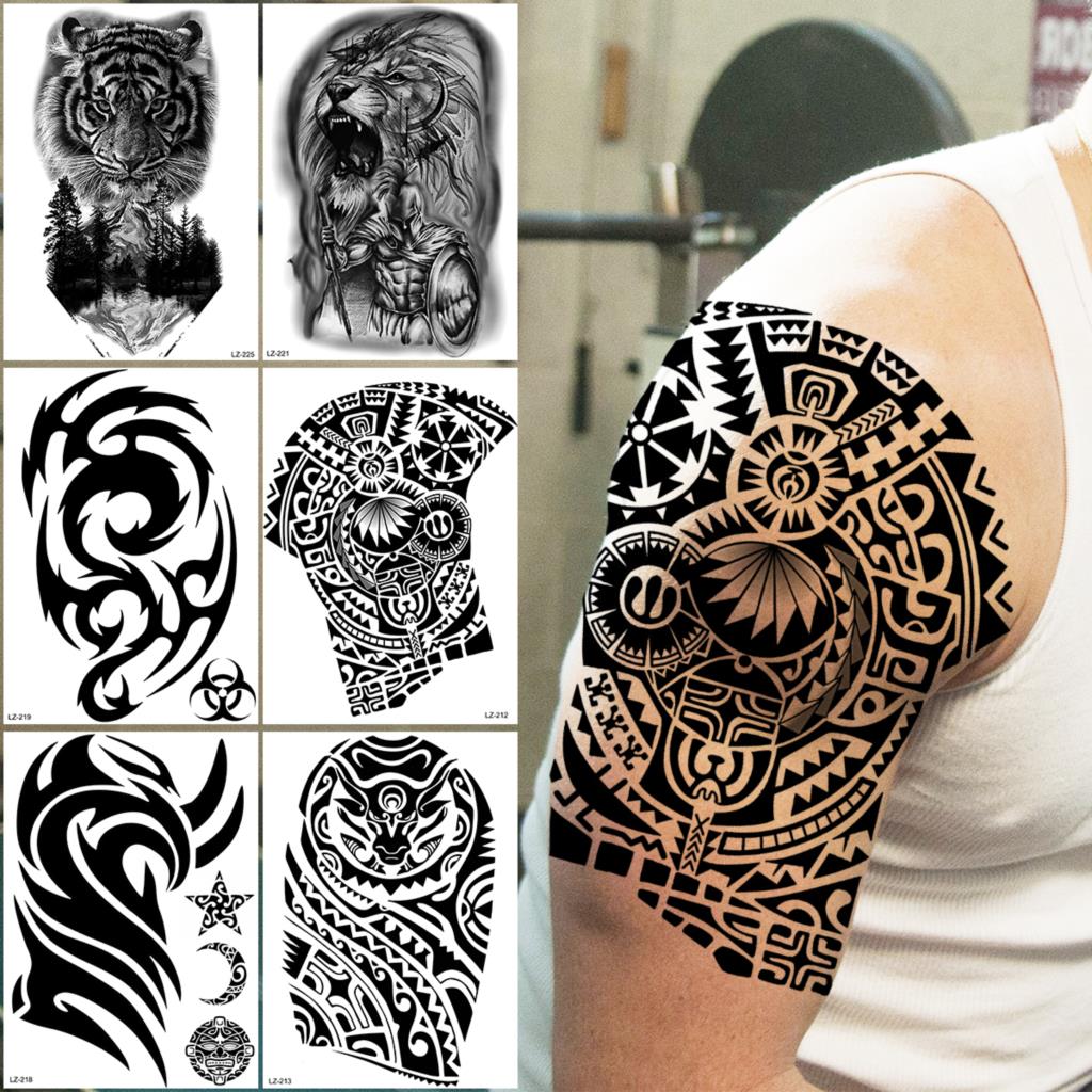 Tribal Black Maori Tattoos For Men Adults Realistic Tiger Lion Forest Knight Fake Tattoo Sticker Arm Body Tatoos Waterproof 3D