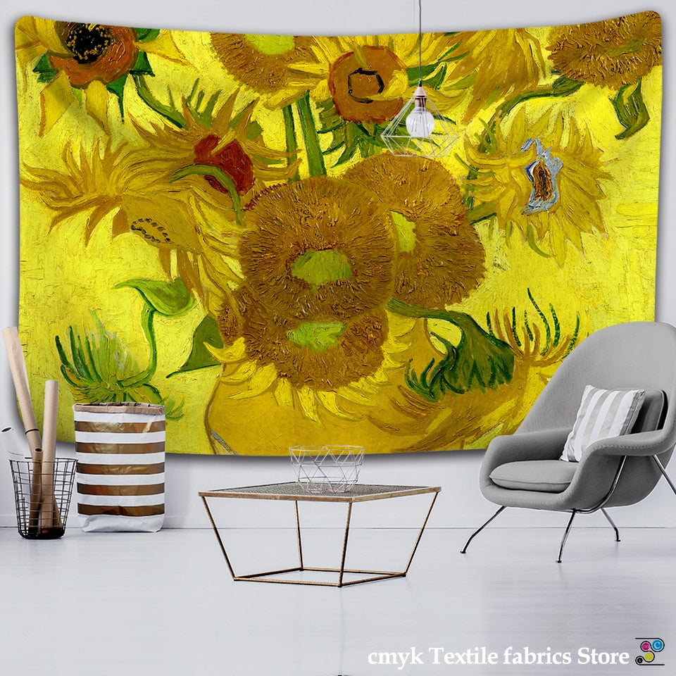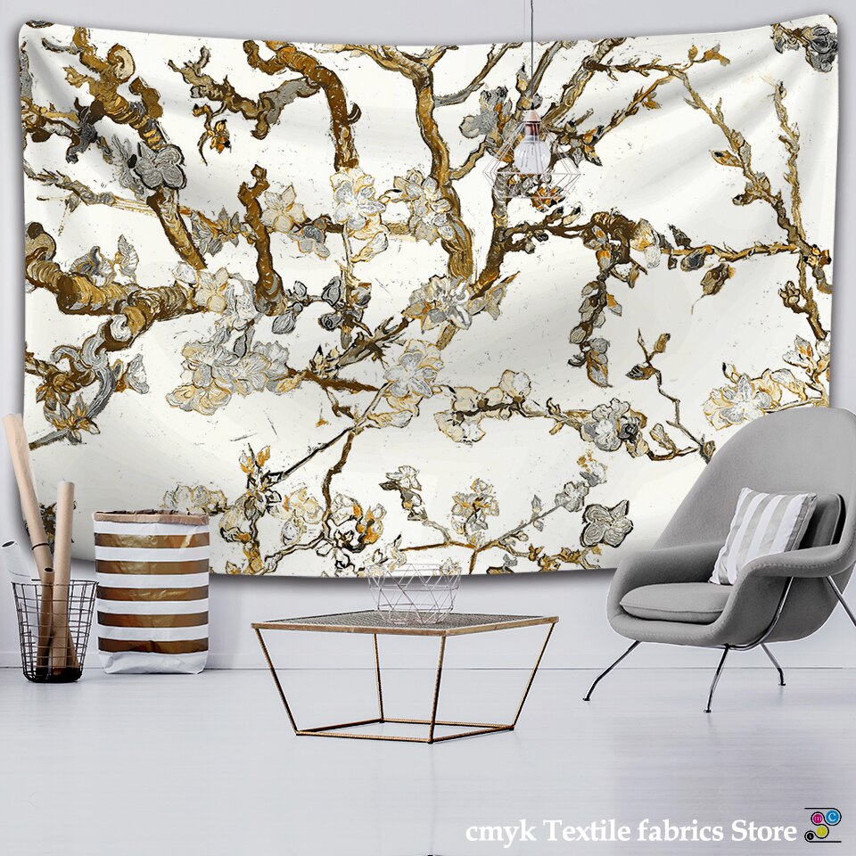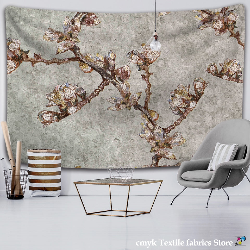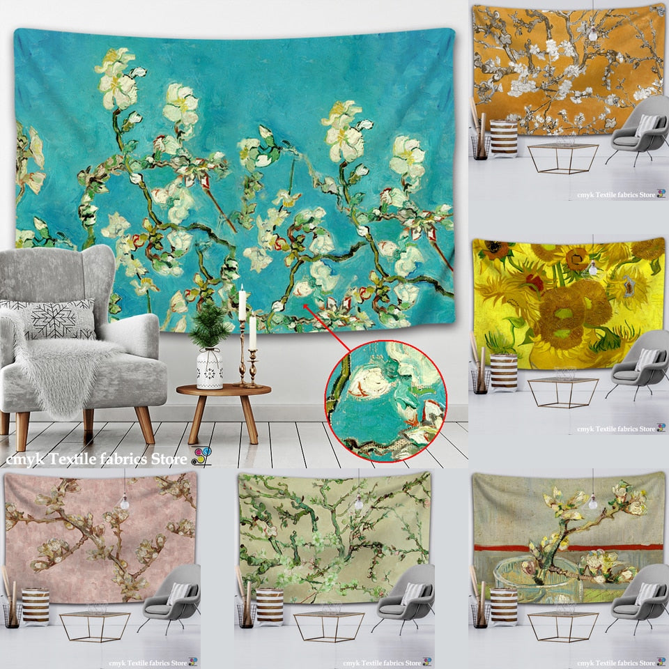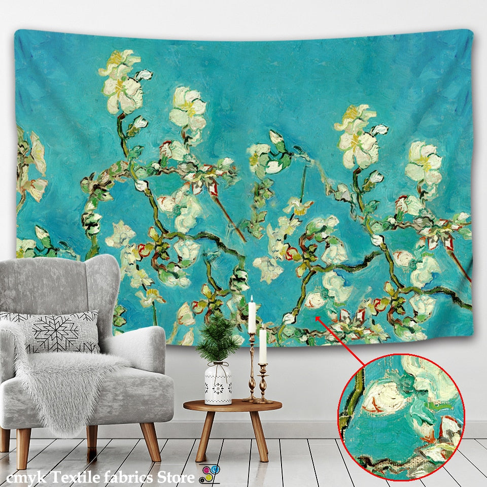 Van Gogh Oil Painting Almond Blossoms Tapestry Headboard Wall Art Bedspread Dorm Tapestry Home Decor
