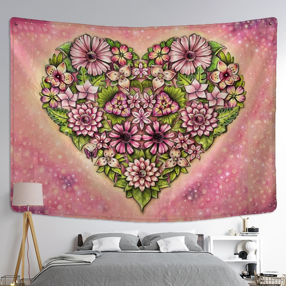Vintage Flower Wall Tapestry Wall Hanging Love Bohemian Witchcraft Psychedelic Kawaii Room Dormitory Artist Home Decor