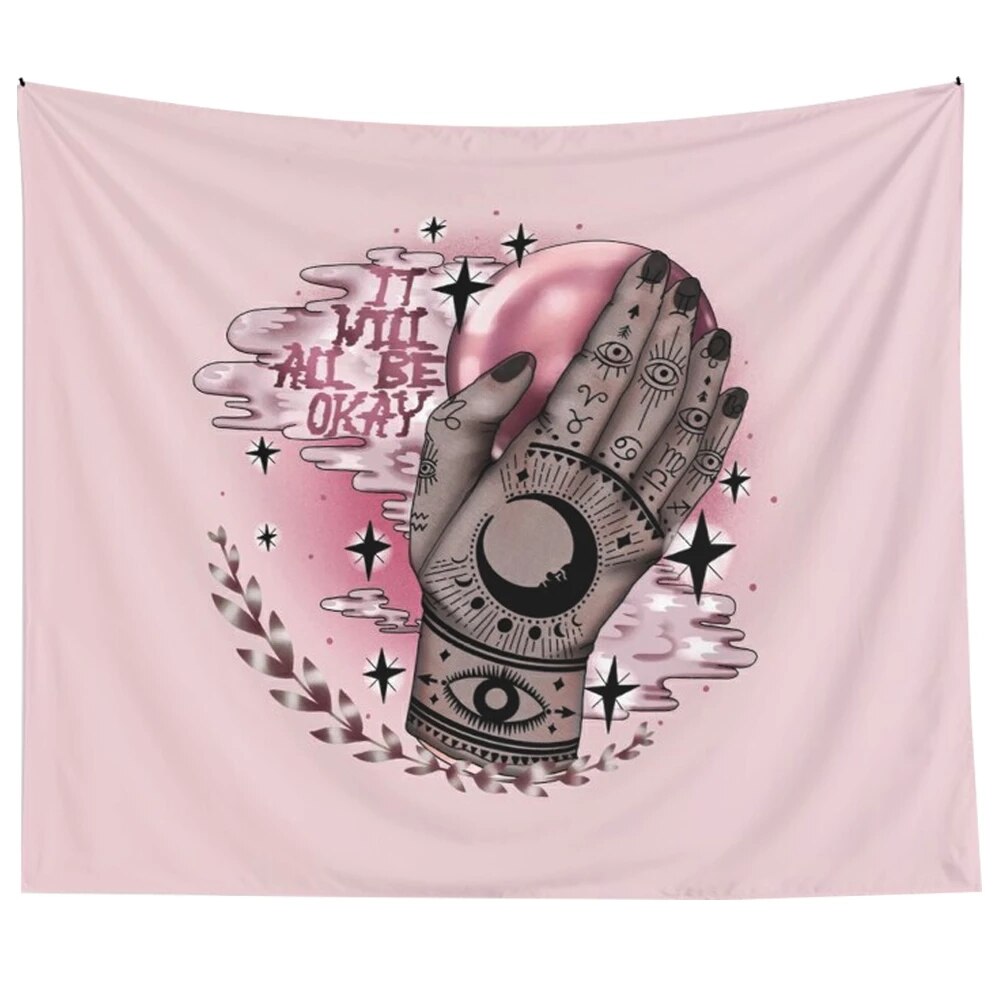 Vintage Tarot Card Pink Tapestry Ouija It Will All Be OK Dorm Room Decoration Pink Boho Home Decor Psychedelic Sun Moon Wall