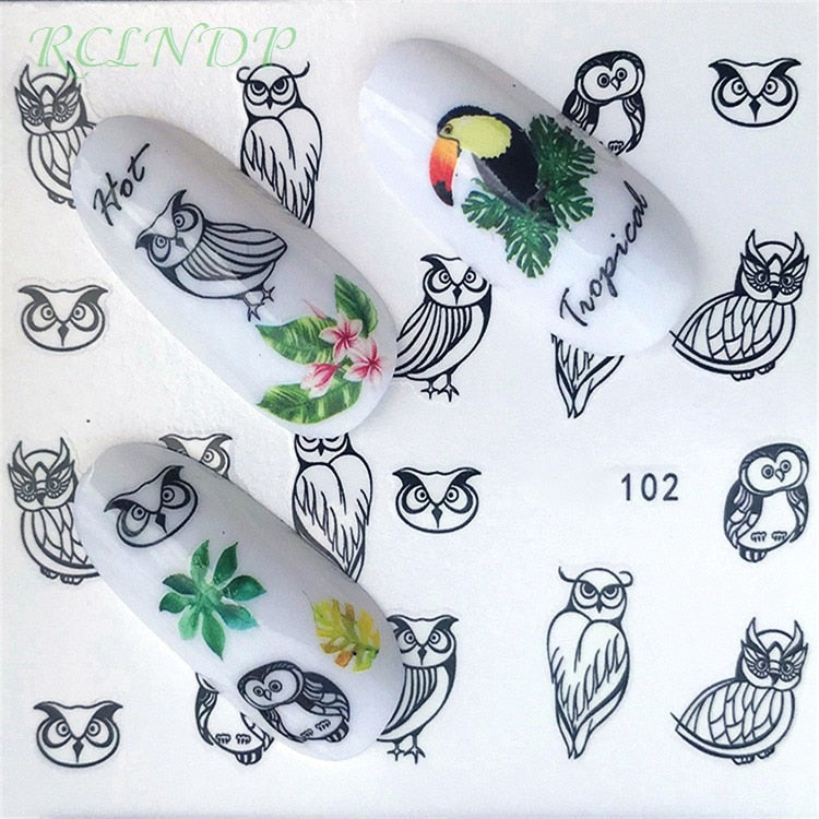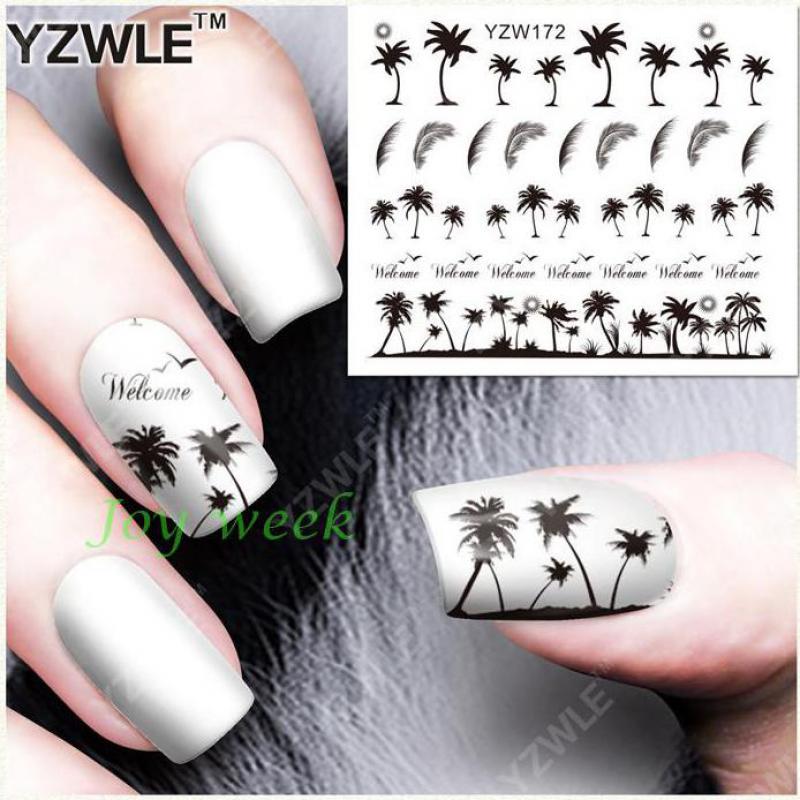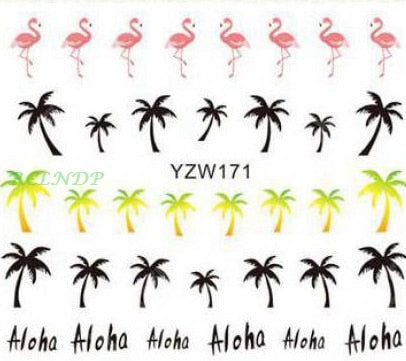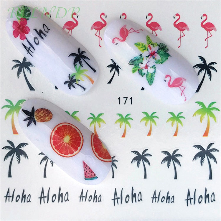 Water sticker for nail art decoration slider flamingo coconut palm tree adhesive design decal manicure lacquer accessoires foil