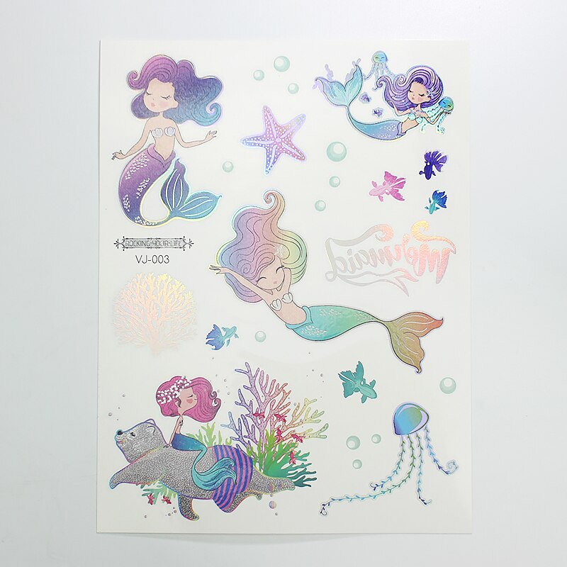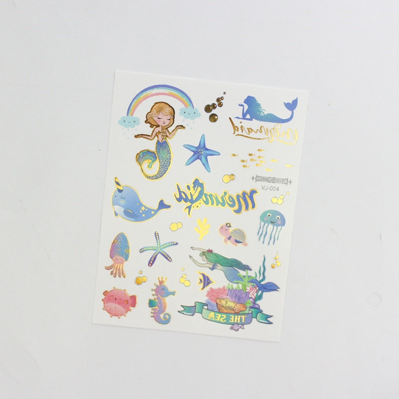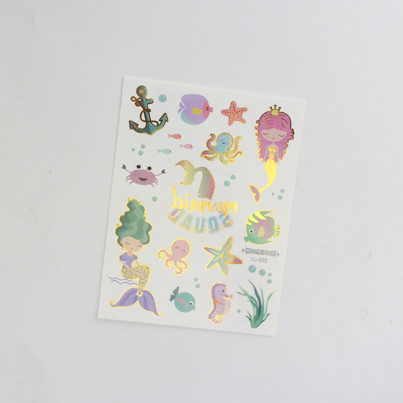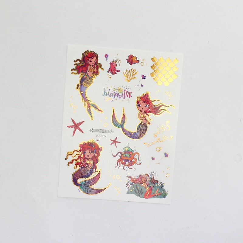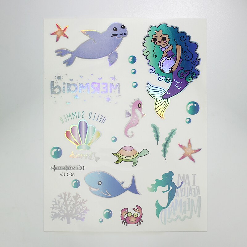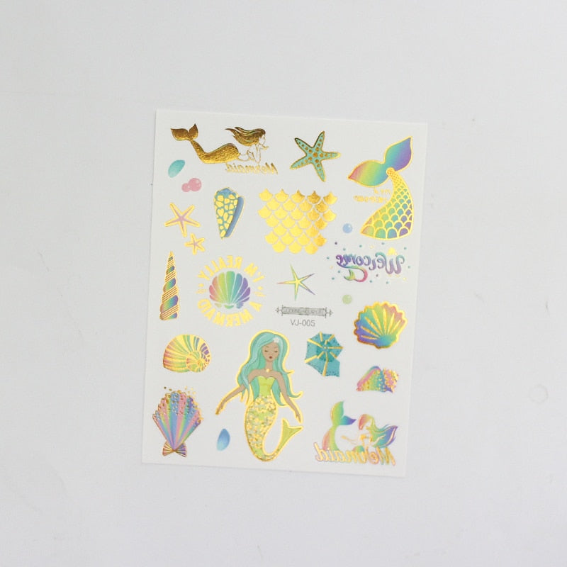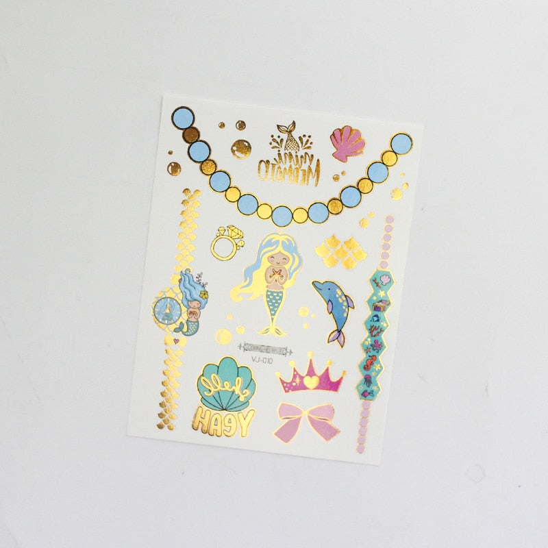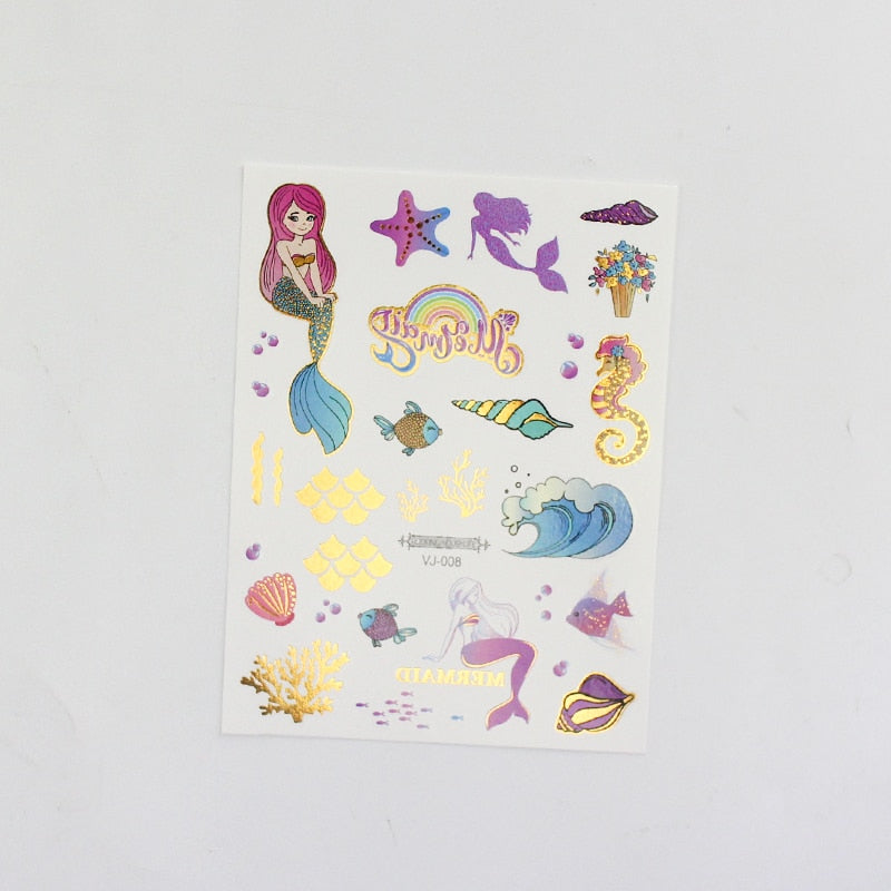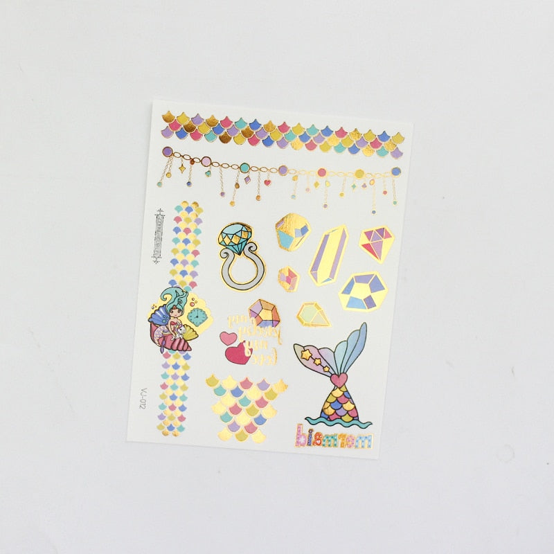 water tattoos for kids cartoon silver gold tattoo sticker sea mermaid temporary tattoos children girls hand tattoo finger decal