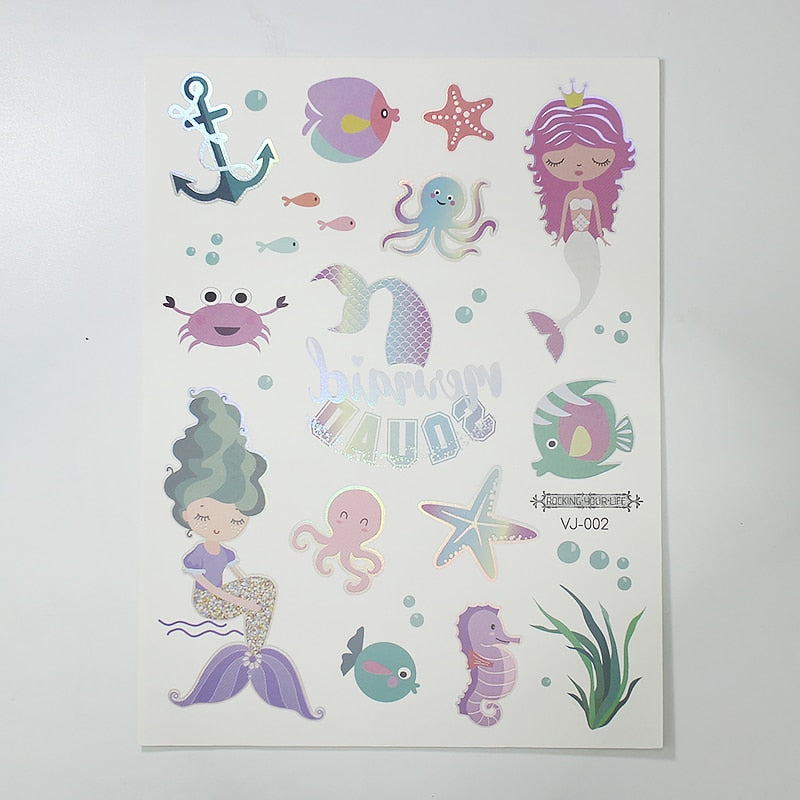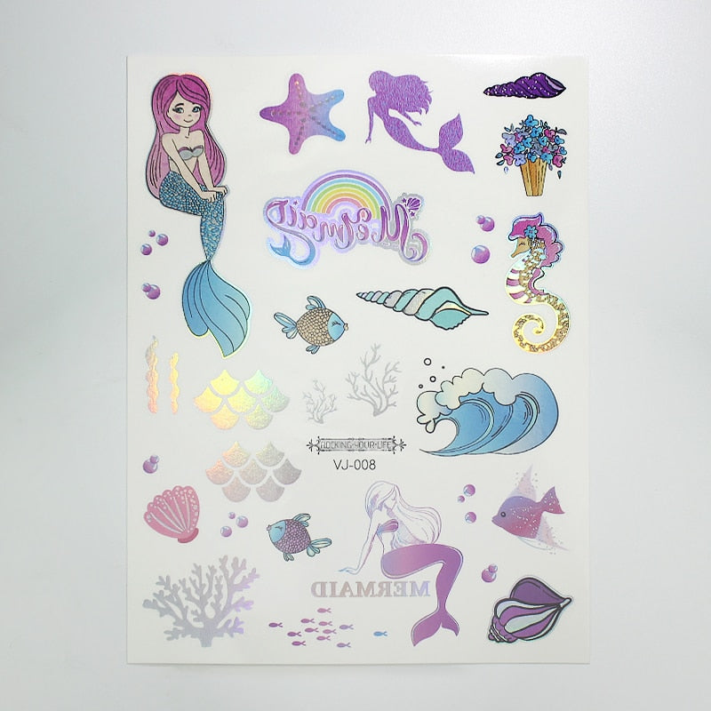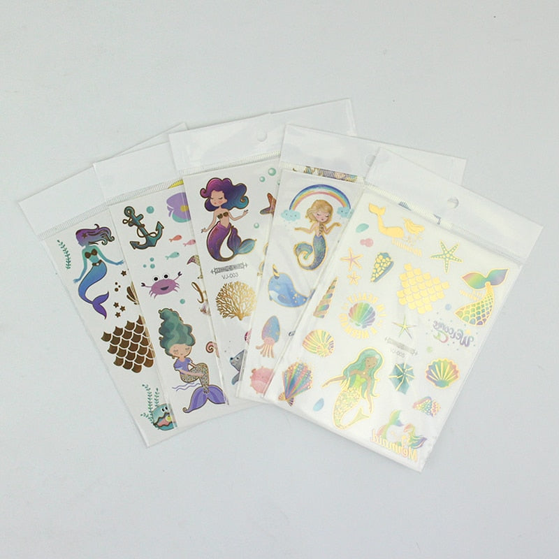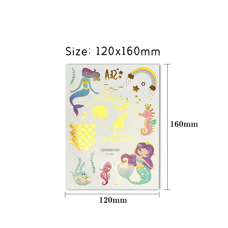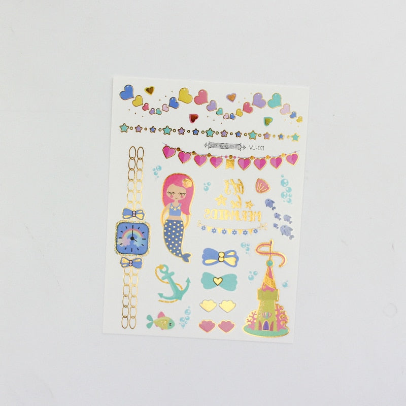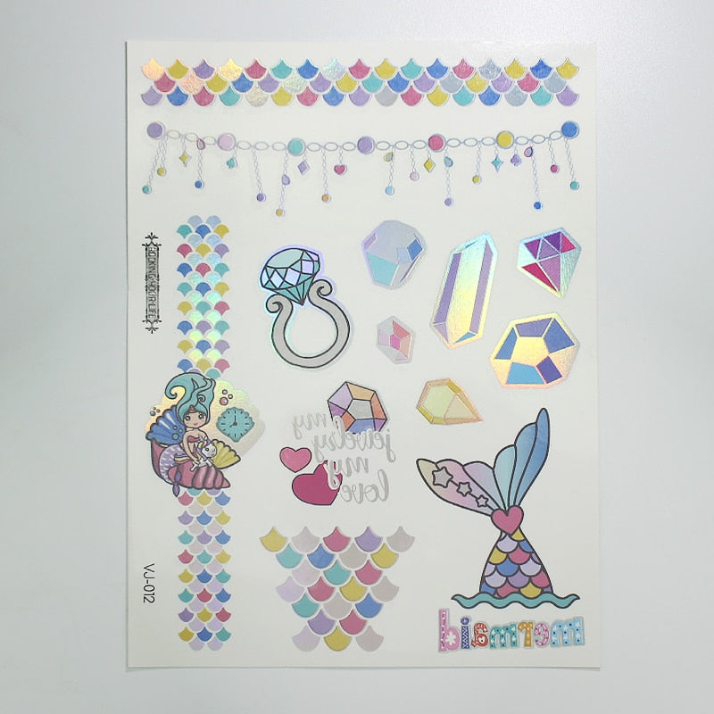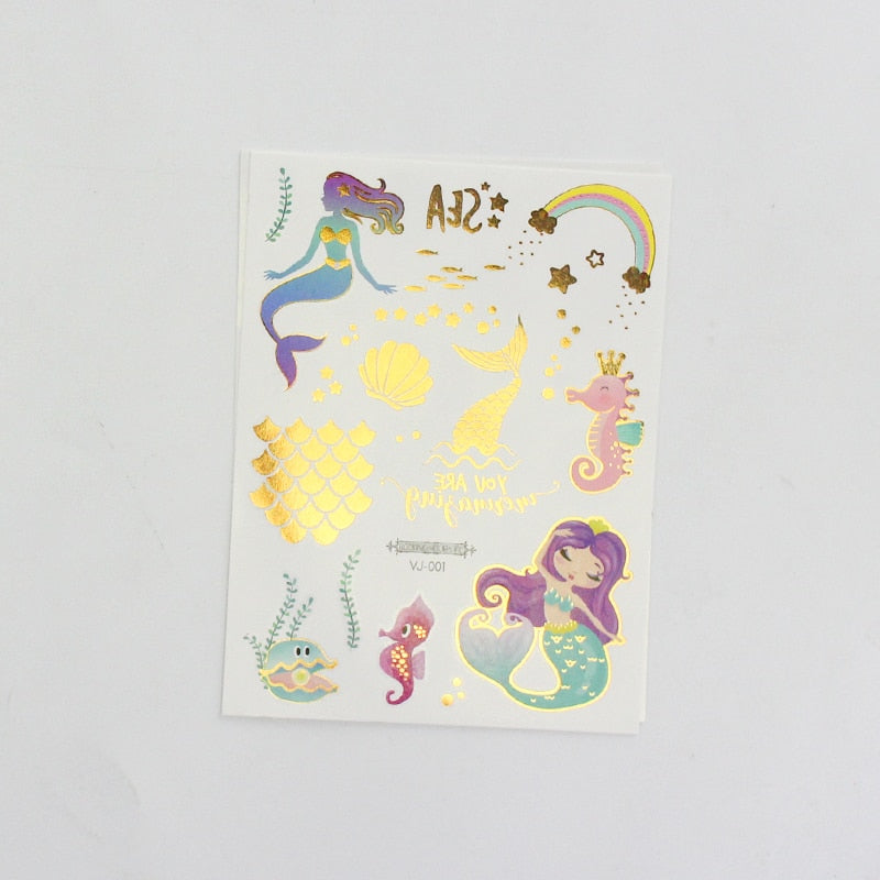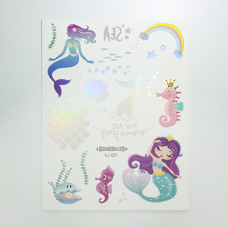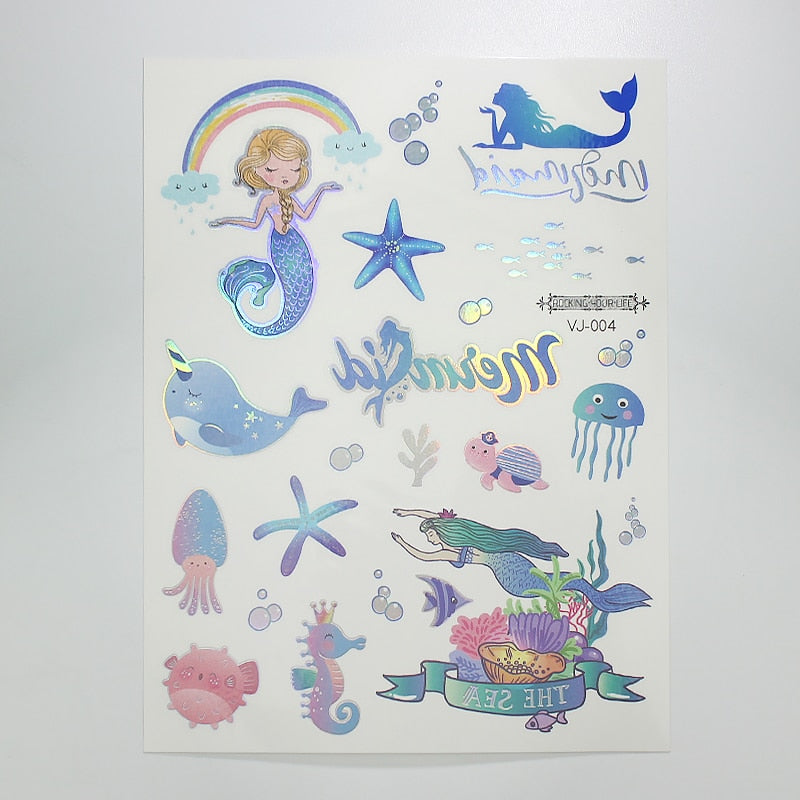 water tattoos for kids cartoon silver gold tattoo sticker sea mermaid temporary tattoos children girls hand tattoo finger decal