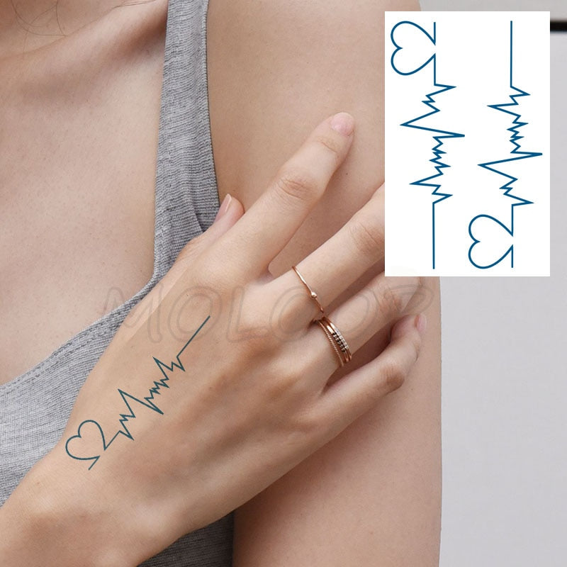 Water Transfer Tattoo Heart-shaped Lifeline Tattoo Body Art Waterproof Temporary Fake Flash Tattoo for Man Woman Kid 10.5*6cm