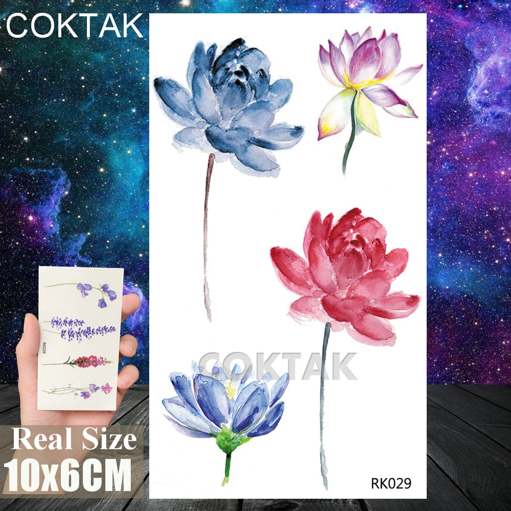 Watercolor Flower Beauty Temporary Tattoos Sticker For Women Body Art Arm Tatoos Waterproof Tattoo Paper Fake Jewelry Tatoos