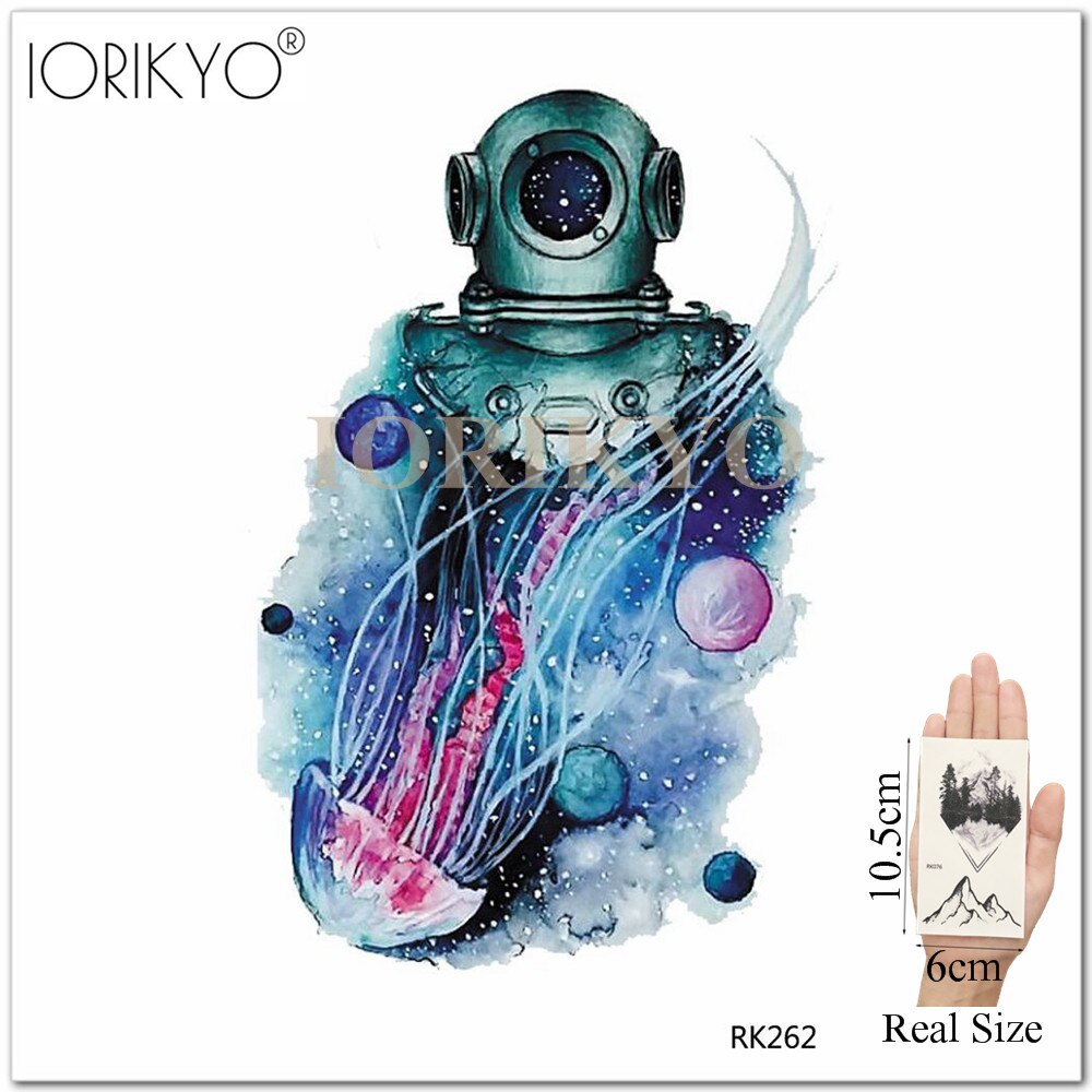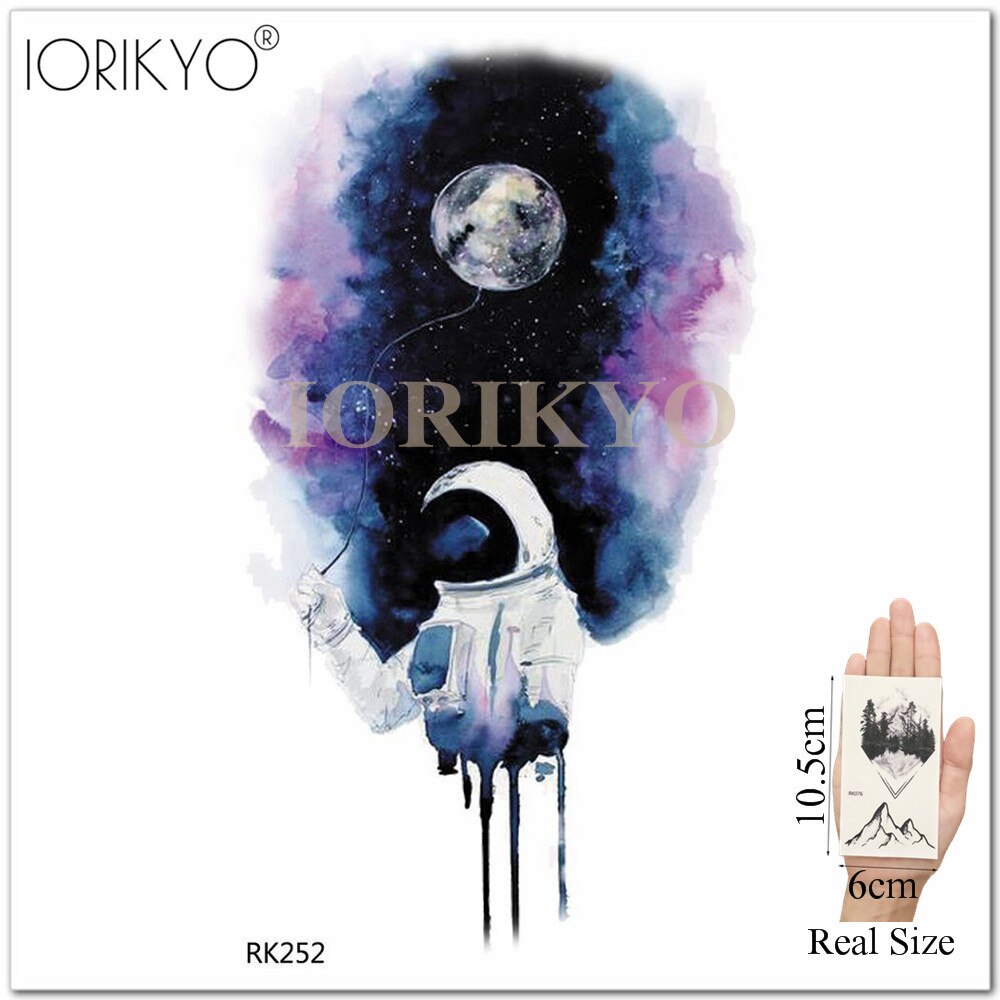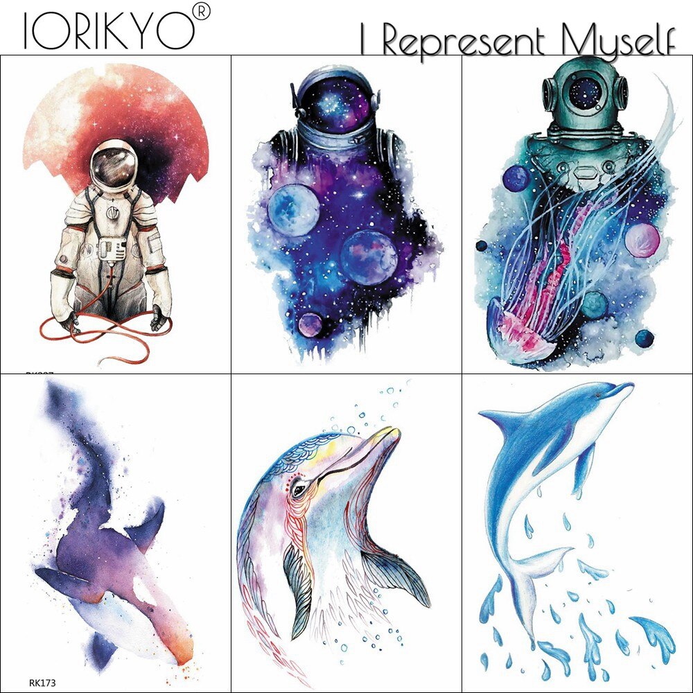 Watercolor Galaxy Cosmonaut Moon Whale Fake Tattoos Stickers For Kids Cartoon In Bulk Tattoo Temporary For Women Arm Tatoo Paste