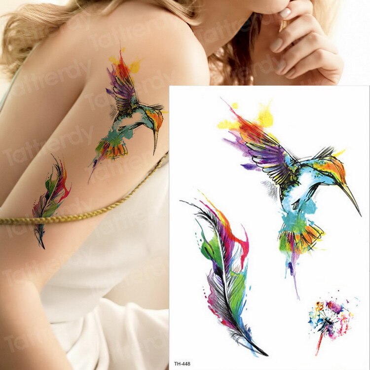 Watercolor Hummingbird Temporary Fake Tattoo Body Art Sticker Waterproof Hand Bird Tattoo for Women Arm Men Tattoos Water Color