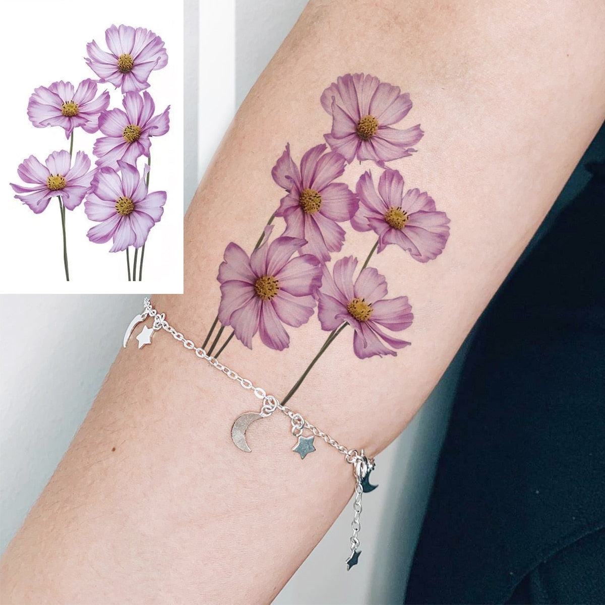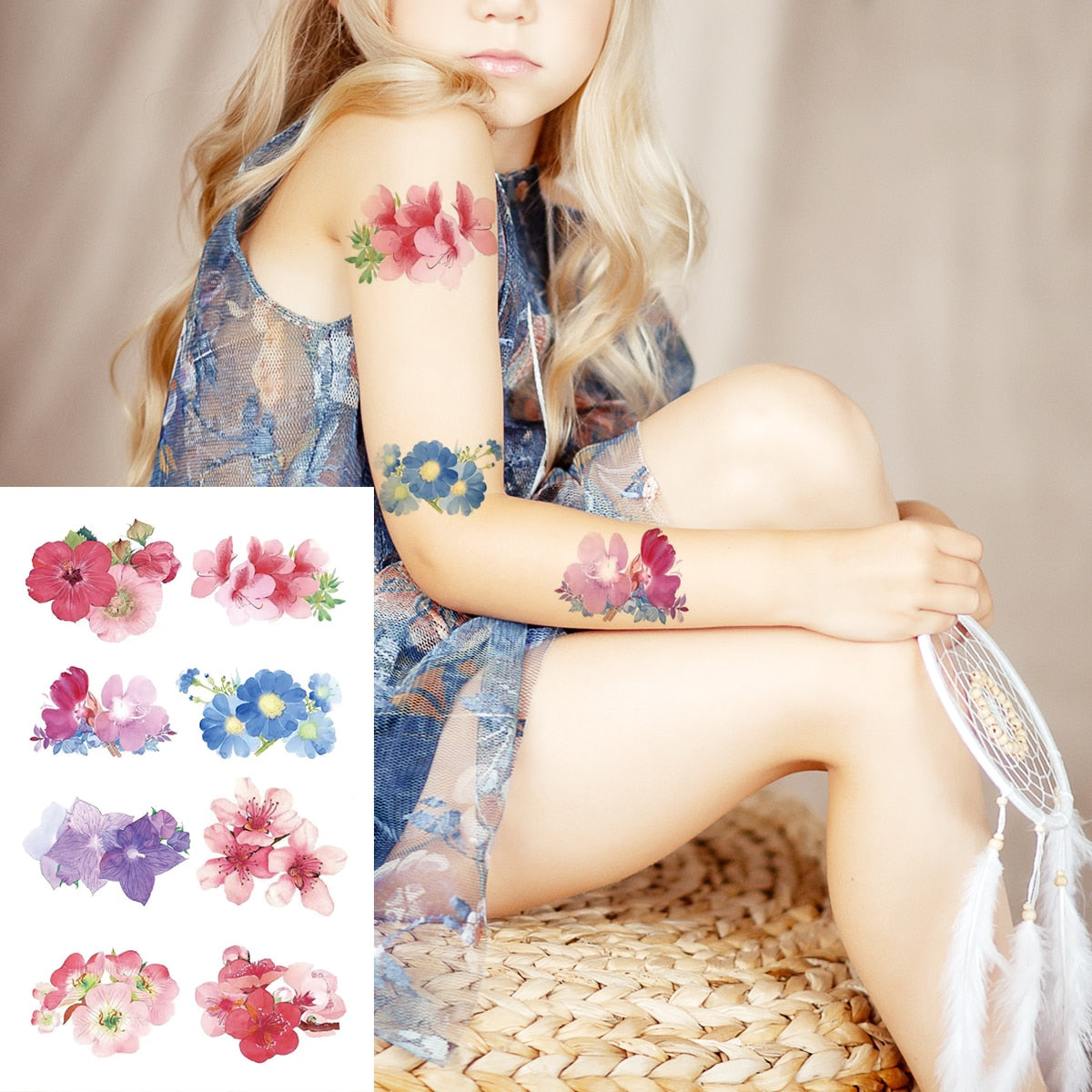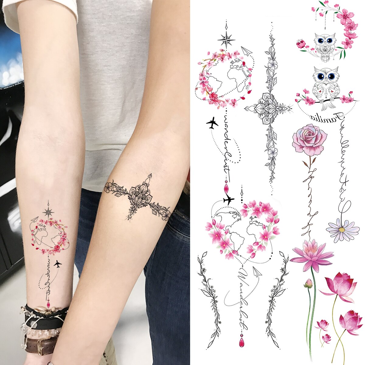Watercolor Universe Henna Temporary Tattoos For Women Adult Lotus Rose Flower Bird Fake Tattoo Body Art Painting Tatoos Decal