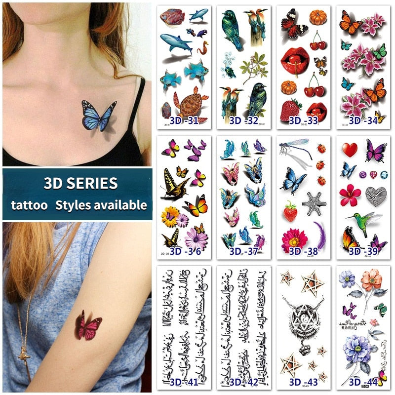 Waterproof 3D tattoo sticker Three-dimensional color printing tattoo sticker Butterfly flower animal color tattoo sticker