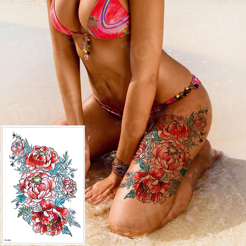 waterproof tattoo stickers bikini peony tattoo & body art flower rose tattoo fake water transfer tattoo temporary tatoo leg arm