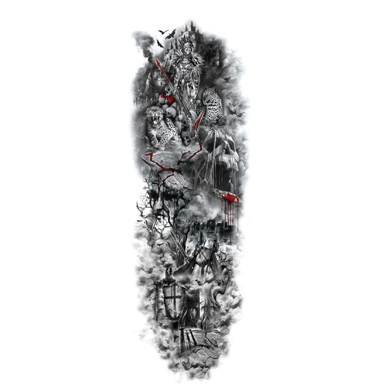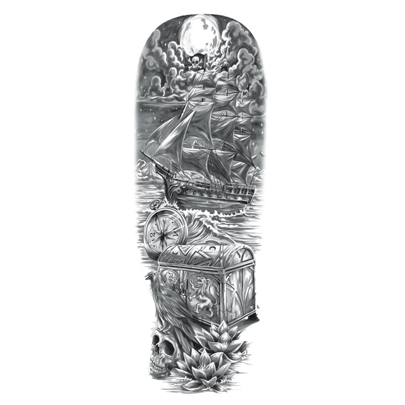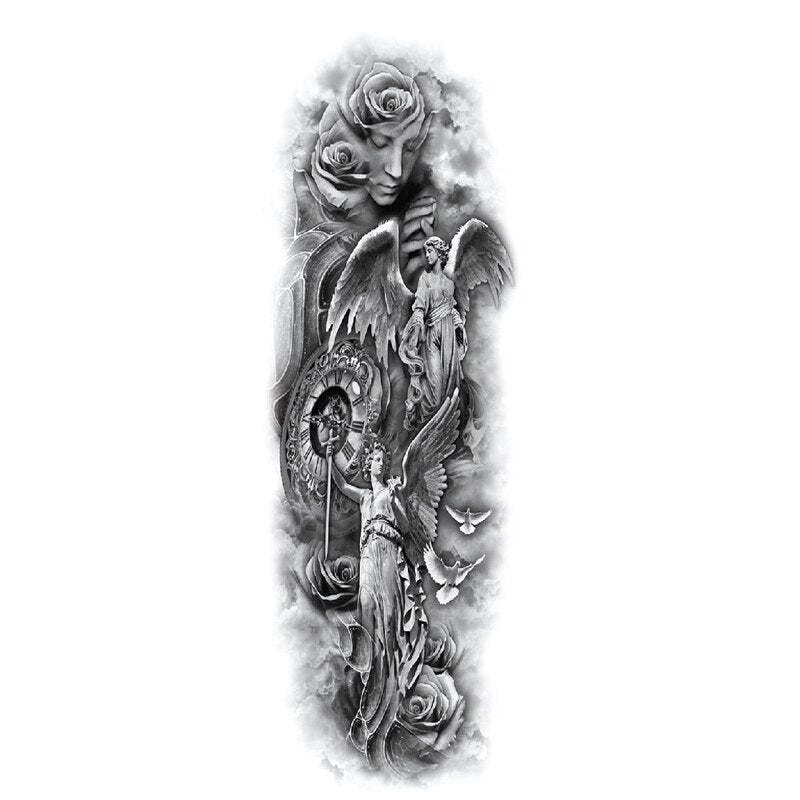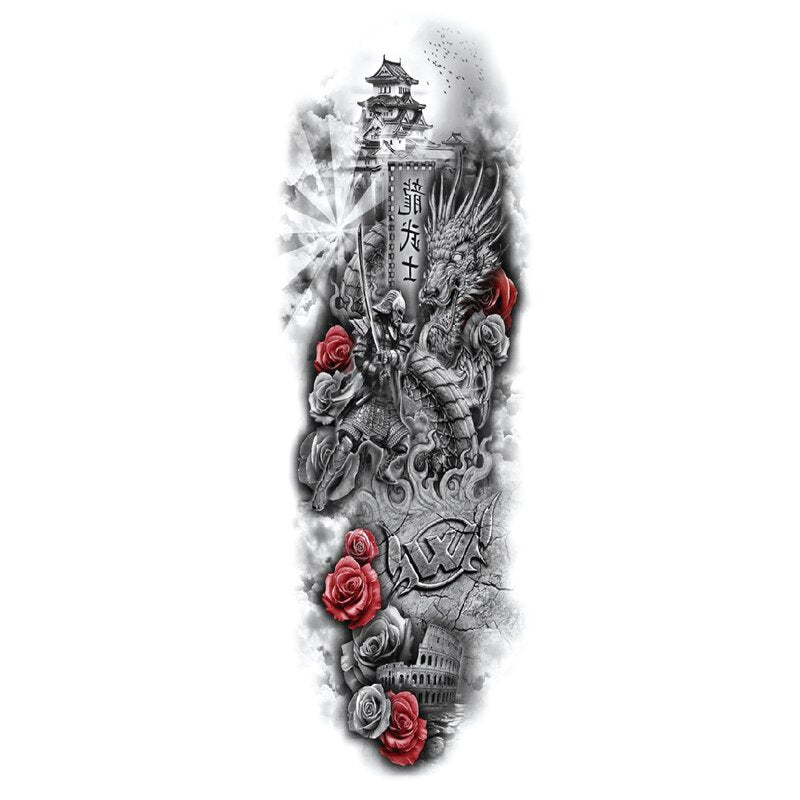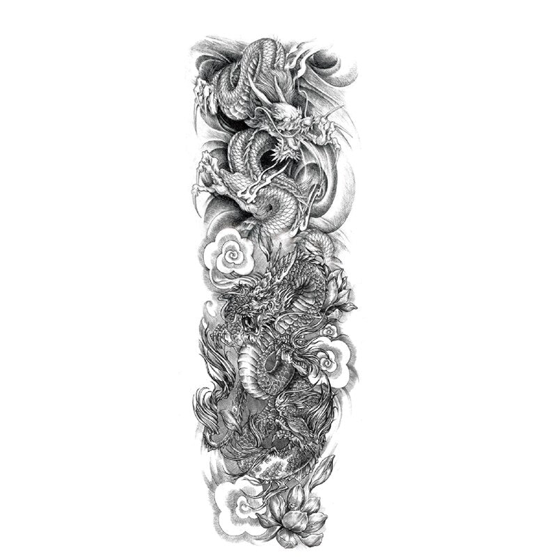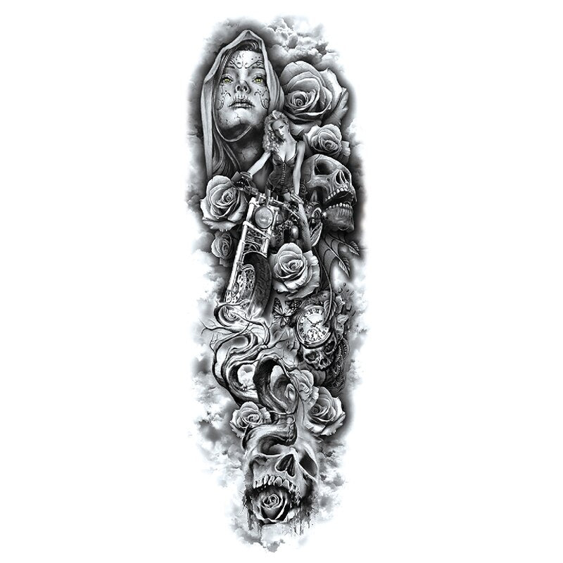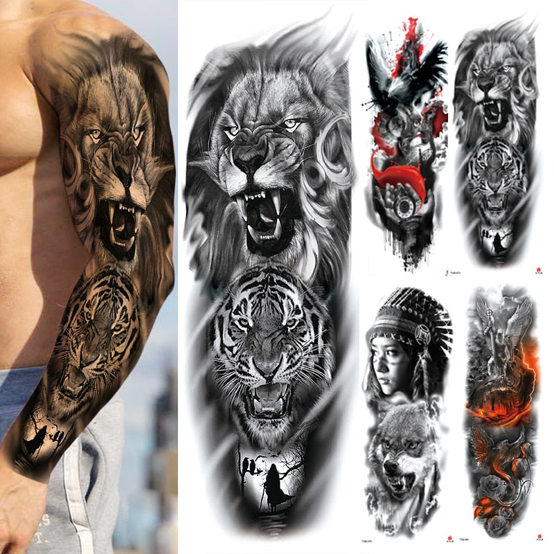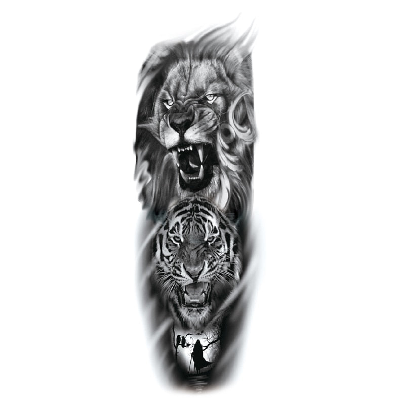 Waterproof Temporary Fake Tattoos Sticker Skull Totem Tiger Monster Body Art Full Arm Sleeve Fake Tattoo Snake for Men Women