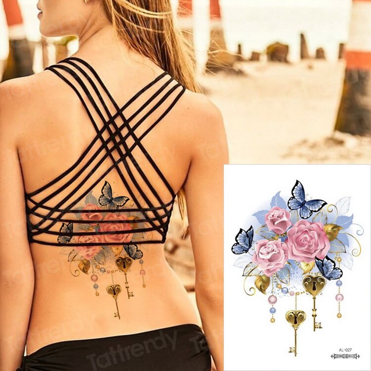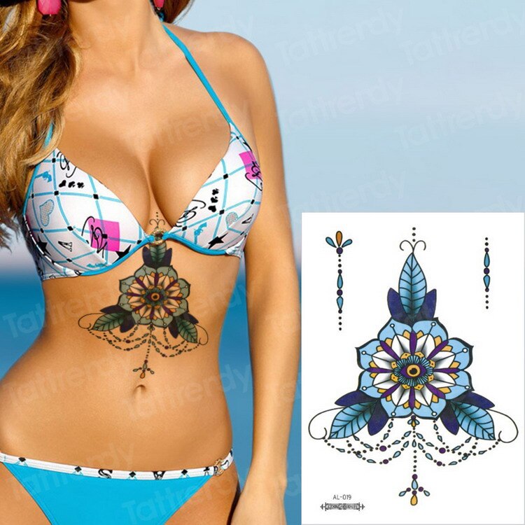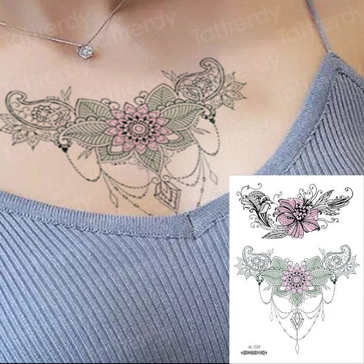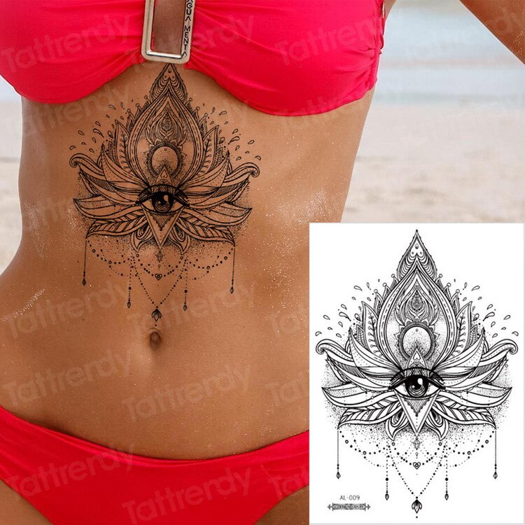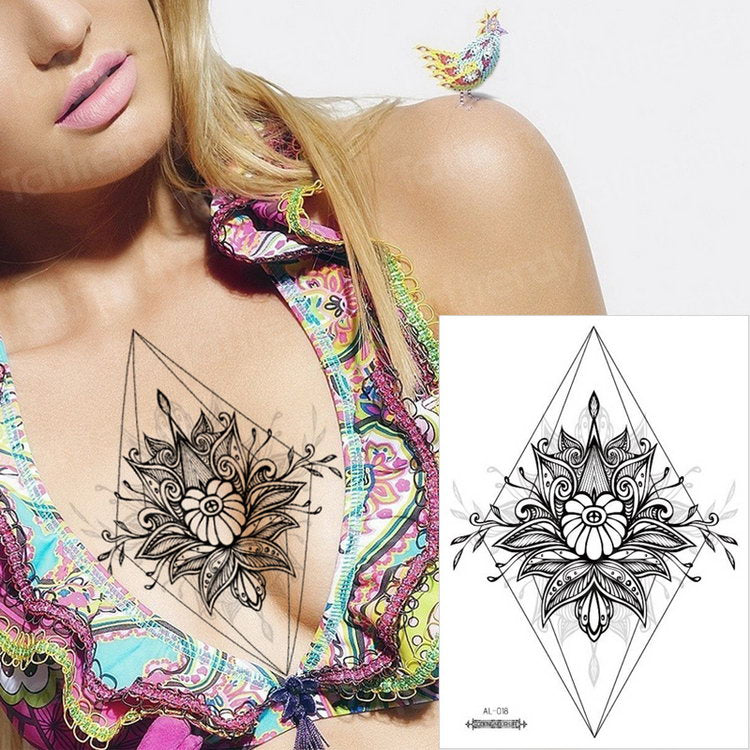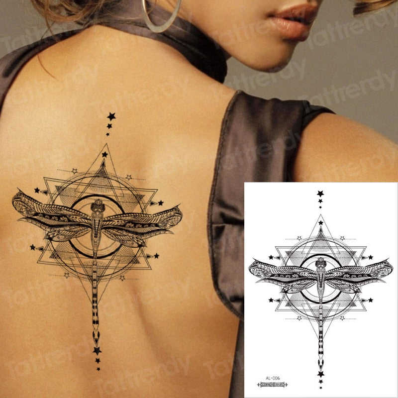 Waterproof Temporary Sticker Geometric dragonfly Sternum Tattoo Black Triangle Tattoos Body Arm Fake Tatoo Chains Sternal patch