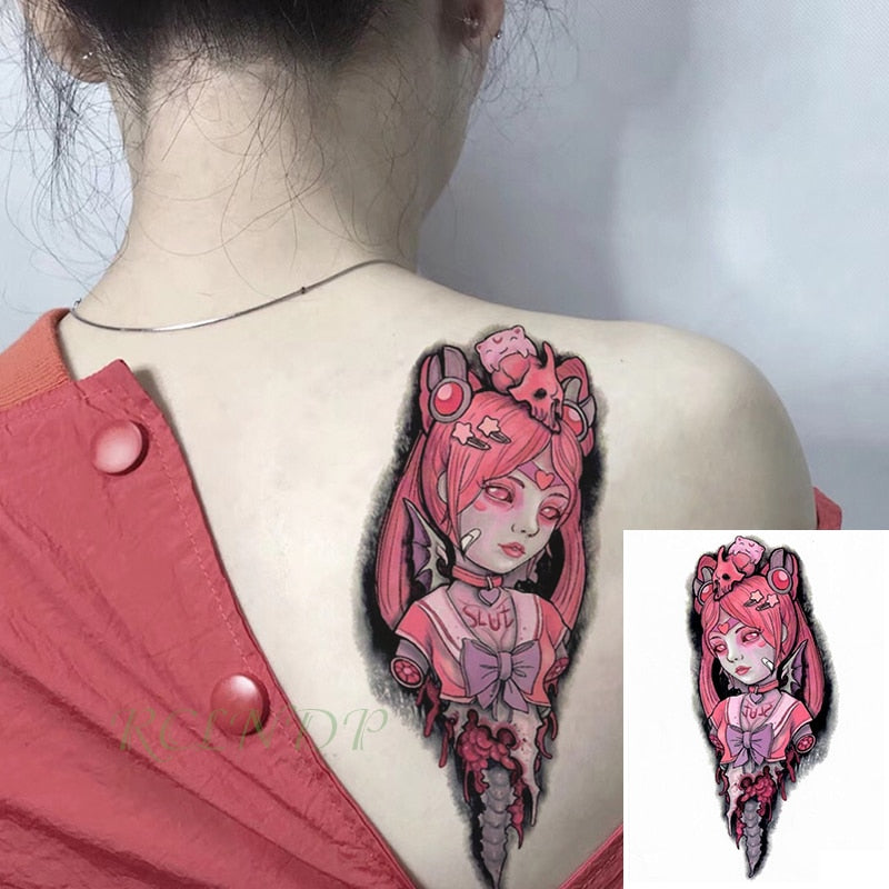 Waterproof Temporary Tattoo cartoon Japanese girl bow Sticker flash tatto fake tatoo large darkness tattoos for women men lady