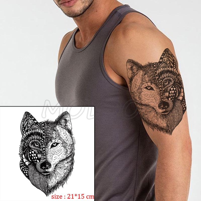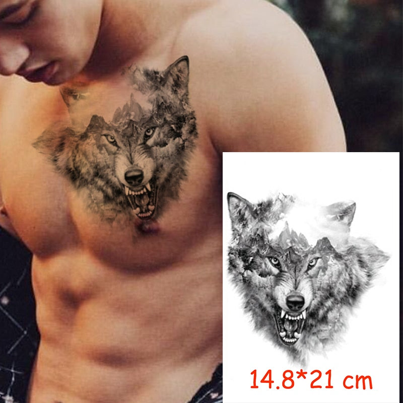 Waterproof Temporary Tattoo Sticker angry wolf mountain tatoo water transfer fake tatoo flash tatto Woman Man kid 14.8*21 cm