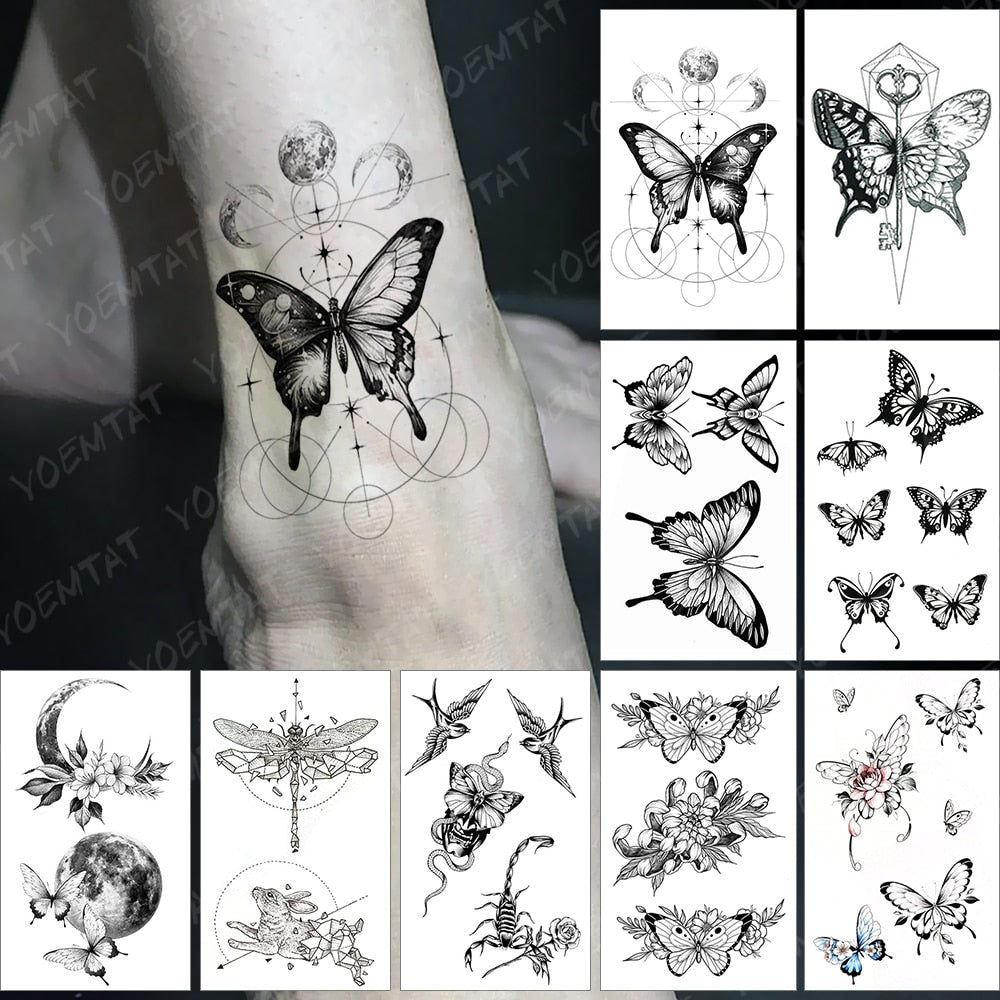 Waterproof Temporary Tattoo Sticker Black Line Moon Planet Universe Butterfly Flash Tatoo Fake Tatto For Body Art Women Men