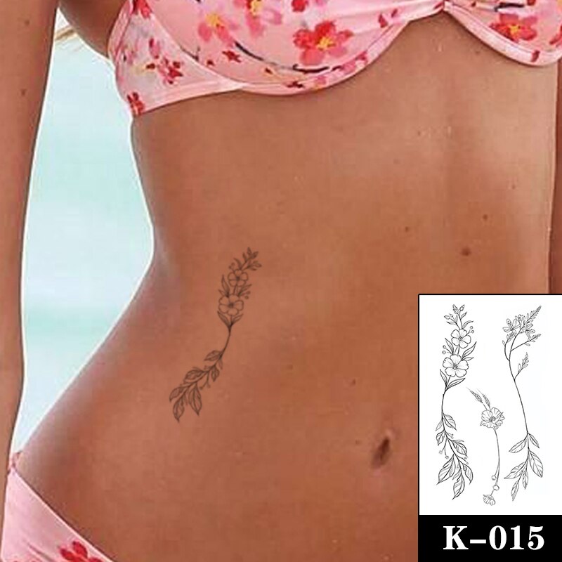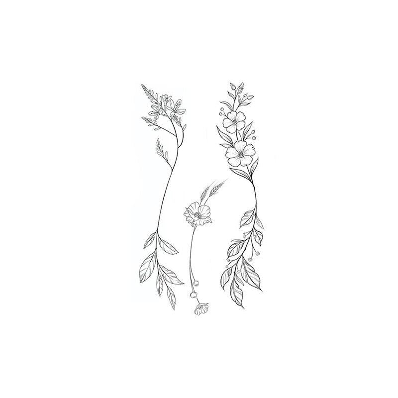 Waterproof Temporary Tattoo Sticker Black Plain Flower Spike Fake Tattoos Flash Tatoo Wrist Chest Neck Body Art for Women Men