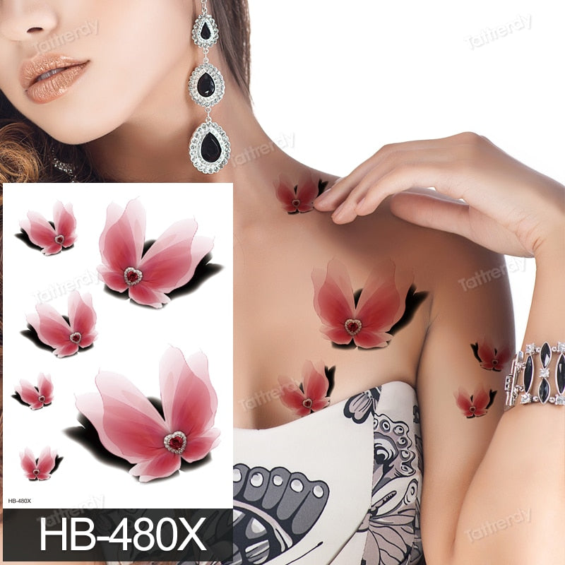 Waterproof Temporary Tattoo Sticker Butterfly Flower Wing Fake Tatto Big Tatoo Tatouage Temporaire Back Chest For Women Girl