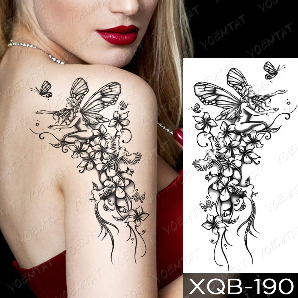 Waterproof Temporary Tattoo Sticker Butterfly Lily Fairy Bird Tattoos Mermaid Girl Body Art Arm Fake Sleeve Tatoo Women Men