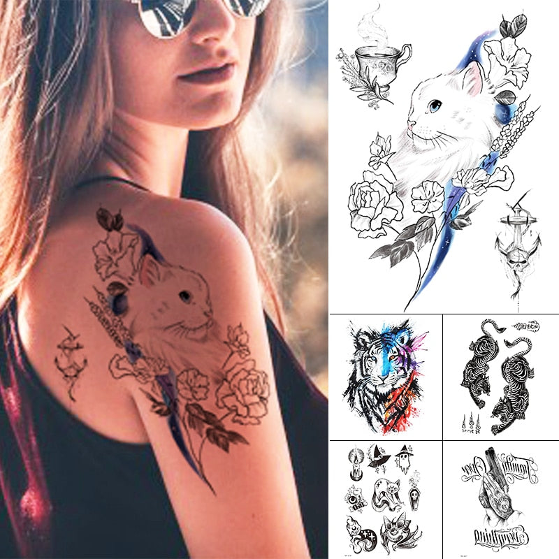 Waterproof Temporary Tattoo Sticker Flower Cute Cat Water Transfer Body Art Flash Fake Tatoo