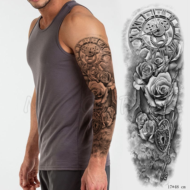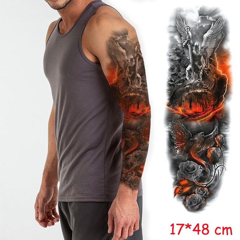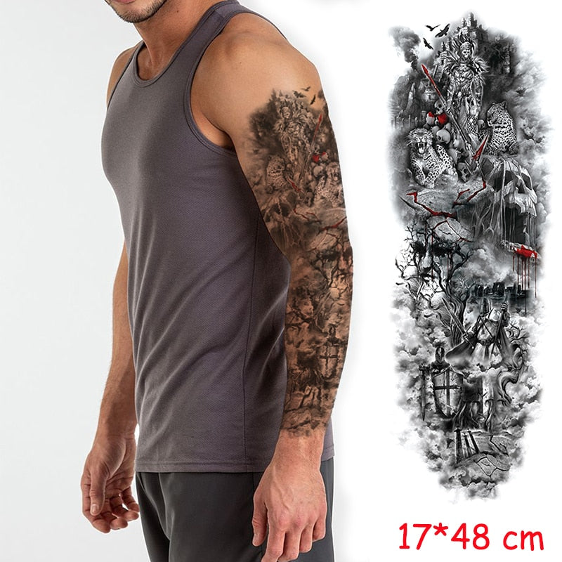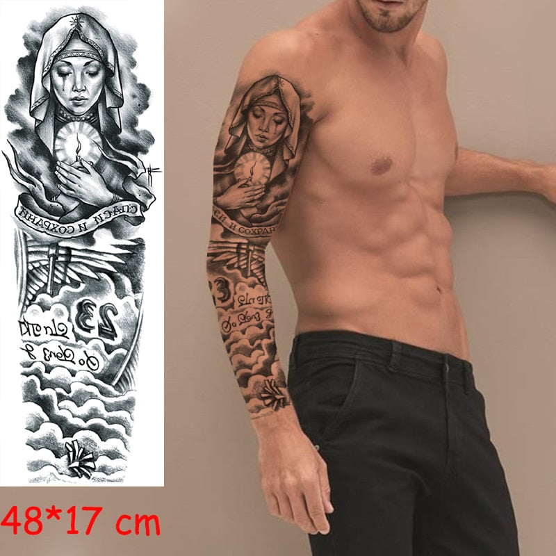 Waterproof Temporary Tattoo Sticker Full Arm Large Virgin Cross Tatoo Stickers Flash Fake Tattoos for Men Women