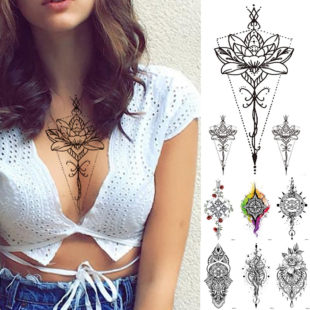 Waterproof Temporary Tattoo Sticker Lotus Flowers Lace Rose Sword Flash Tattoos Ancient Totem Body Art Arm Fake Tatoo Women Men