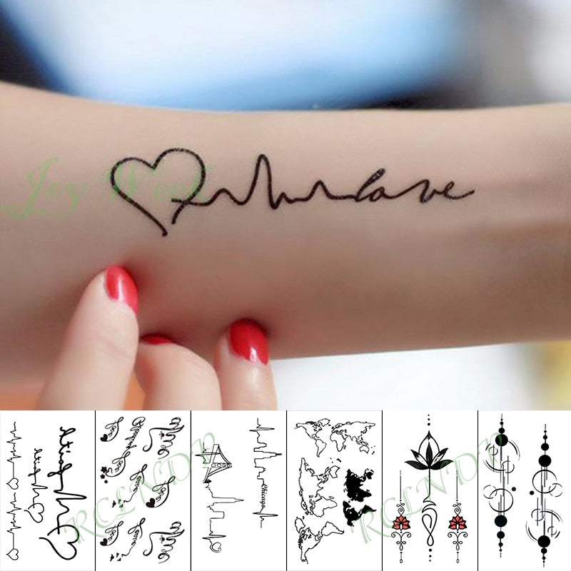 Waterproof Temporary Tattoo Sticker Love Heart Heartbeat Fake Tatto sexy clavicle Hand Arm Flash Tatoo for Kid Girl Men Women