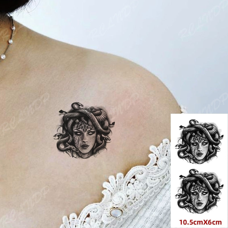 Waterproof Temporary Tattoo Sticker Medusa Snake Hair Sexy Girl Flash Tatoo Fake Tatto Arm Hand Back Leg Art for Women Men