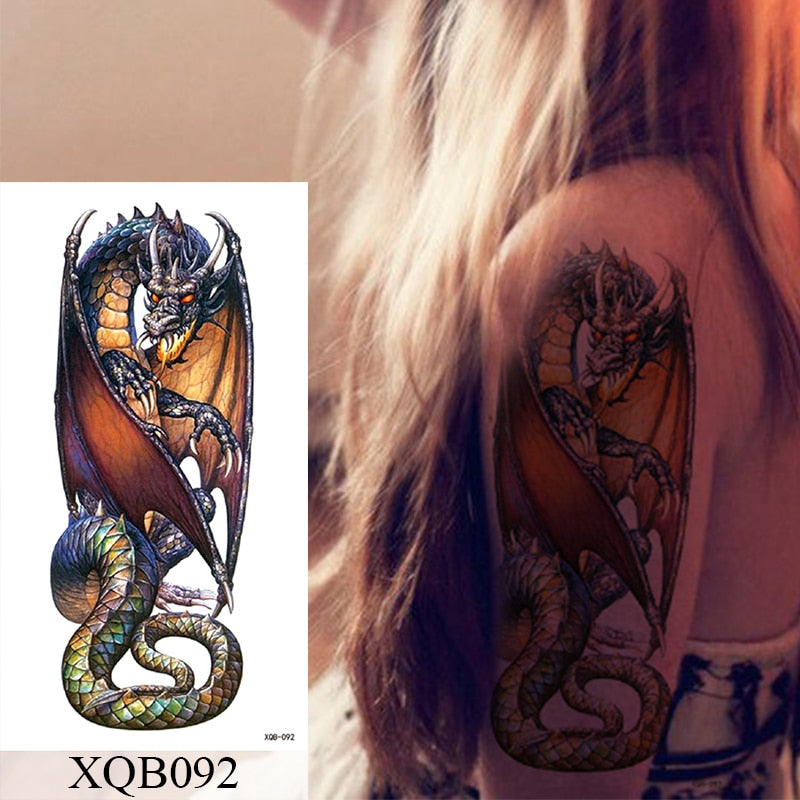 Waterproof Temporary Tattoo Sticker Moon Sea Mermaid Flash Tattoos Flowers Skull Dragon Body Art Arm Fake Tatoo Women Men