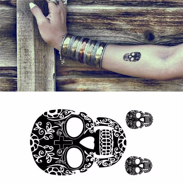 Waterproof Temporary Tattoo Sticker on body art Mexican skull tatto stickers flash tatoo fake tattoos for girl women men