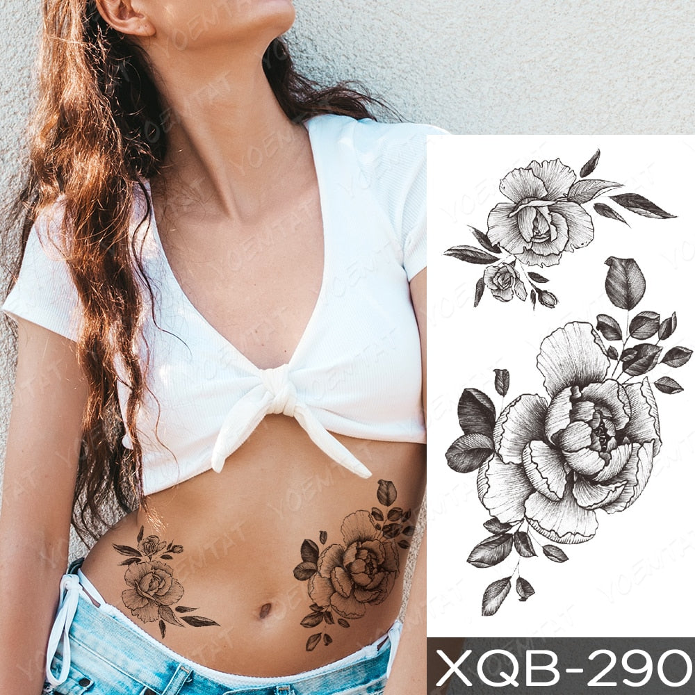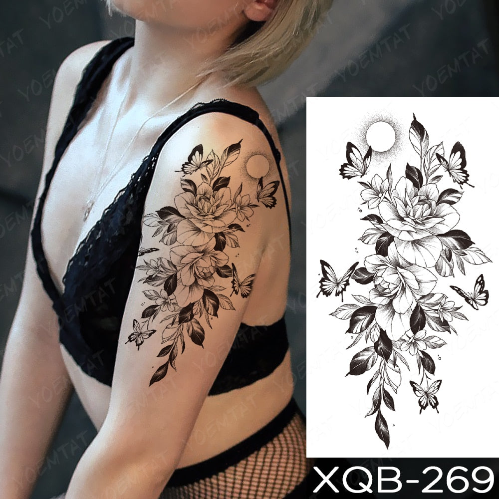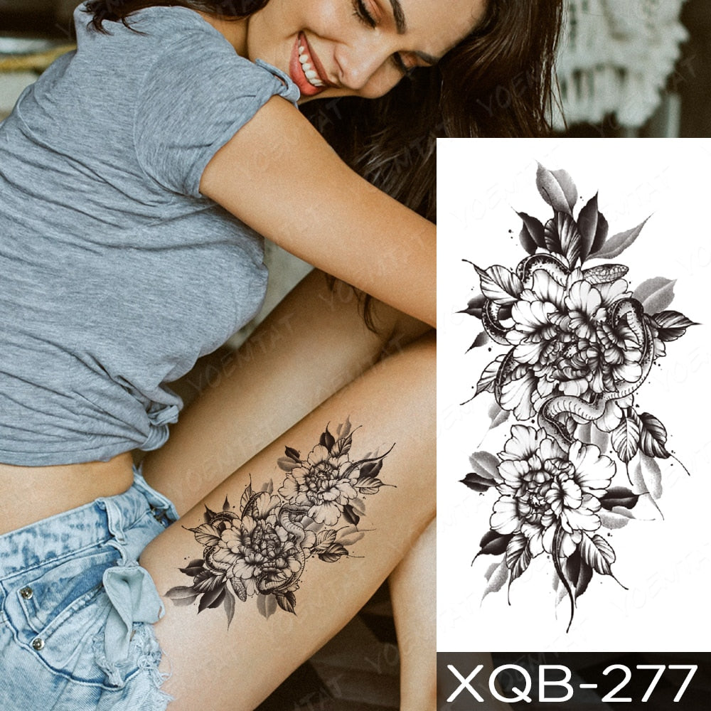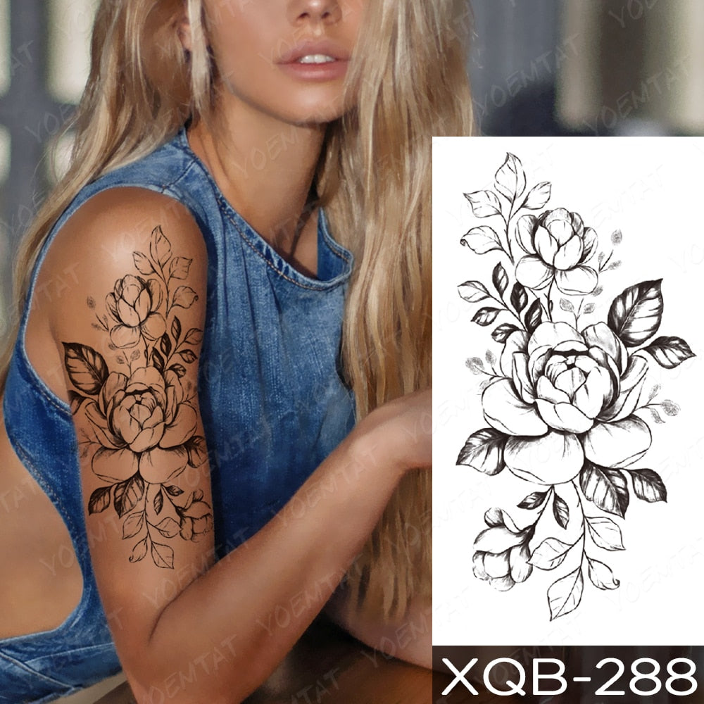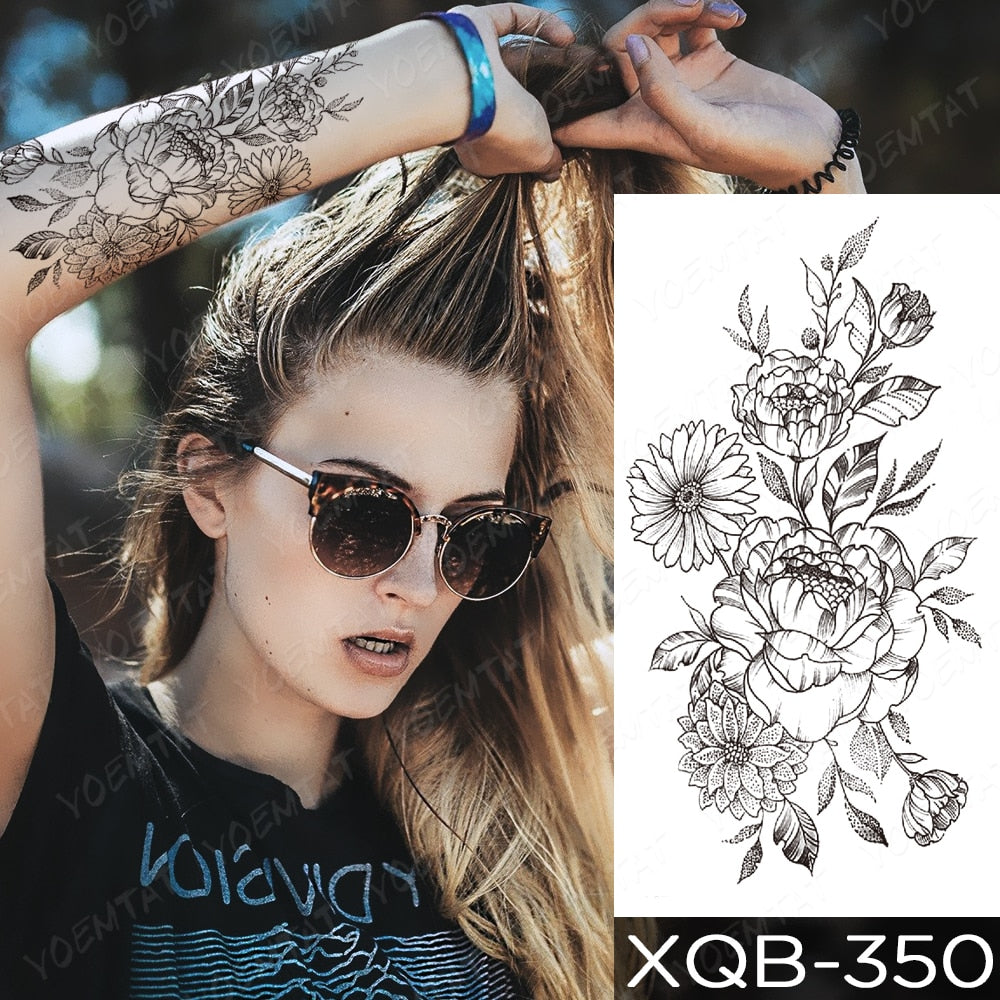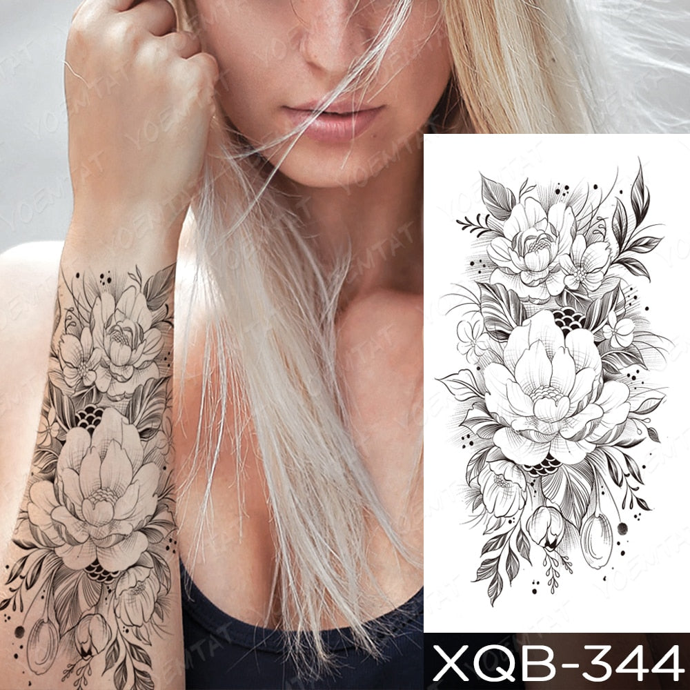 Waterproof Temporary Tattoo Sticker Orchid Flower Tattoos Peony Lotus Lines Painted Rose Body Art Arm Fake Sleeve Tatoo Women