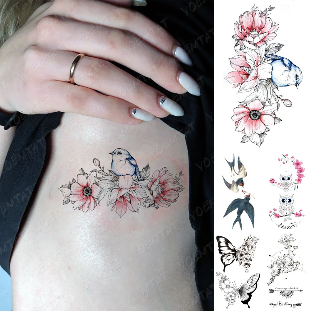 Waterproof Temporary Tattoo Sticker Owl Pink Flowers Flash Tatoo Swallow Butterfly Bird Hand Wrist Fake Tatto For Body Art Women