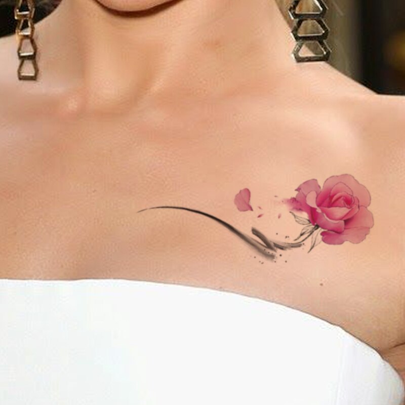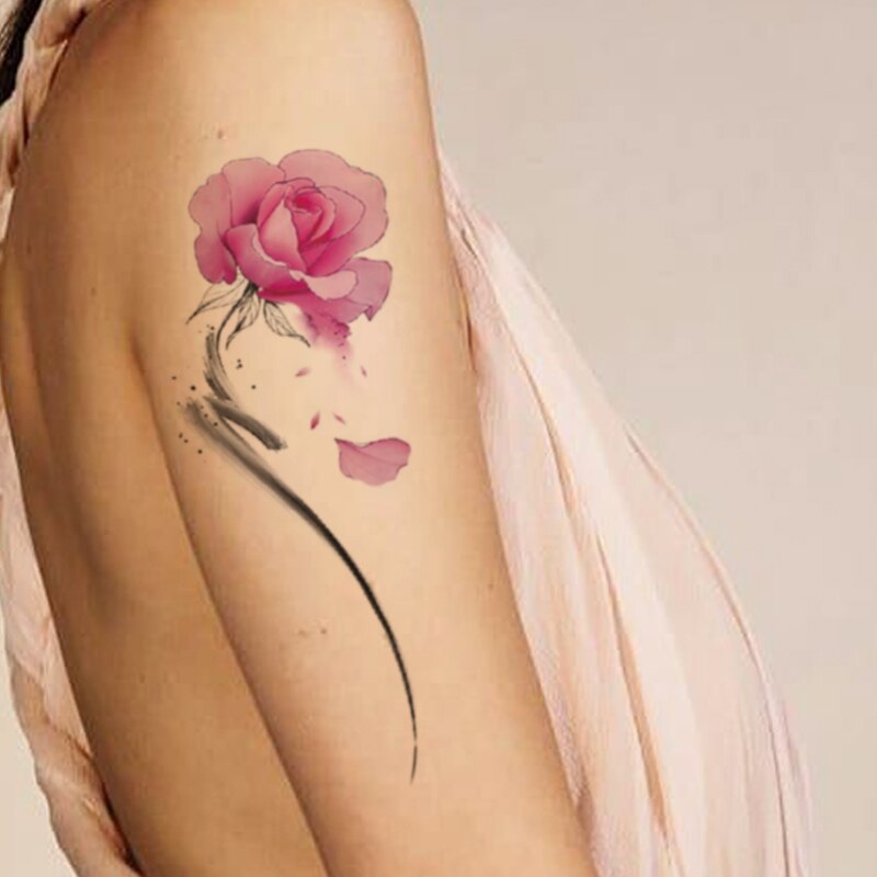 Waterproof Temporary Tattoo Sticker Pink Watercolor Flower Leaves Ink Totem Fake Tattoos Flash Tatoos Arm Body Art for Women Men