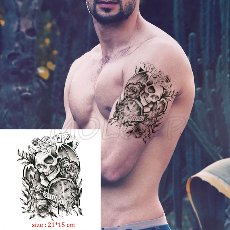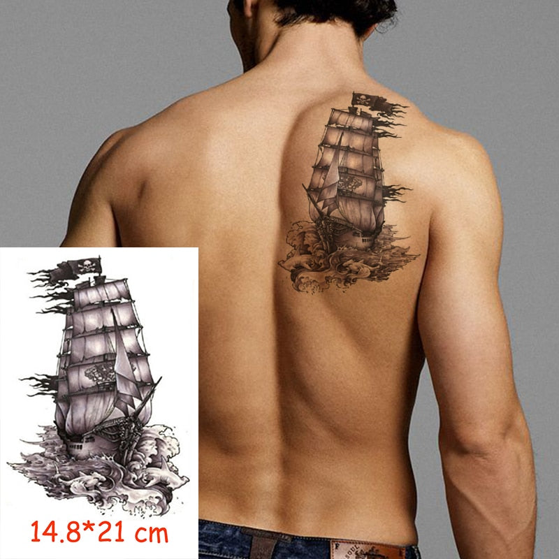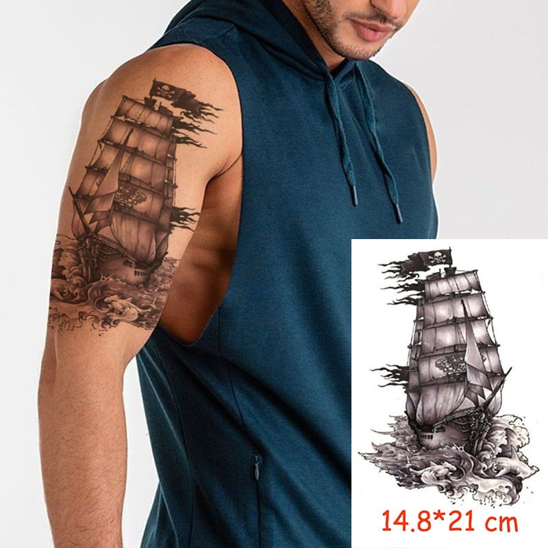 Waterproof Temporary Tattoo Sticker Pirate Ship Skull Flag Tatoo Water Transfer Fake Tatoo Flash Tatto Woman Man Kid 14.8*21 Cm