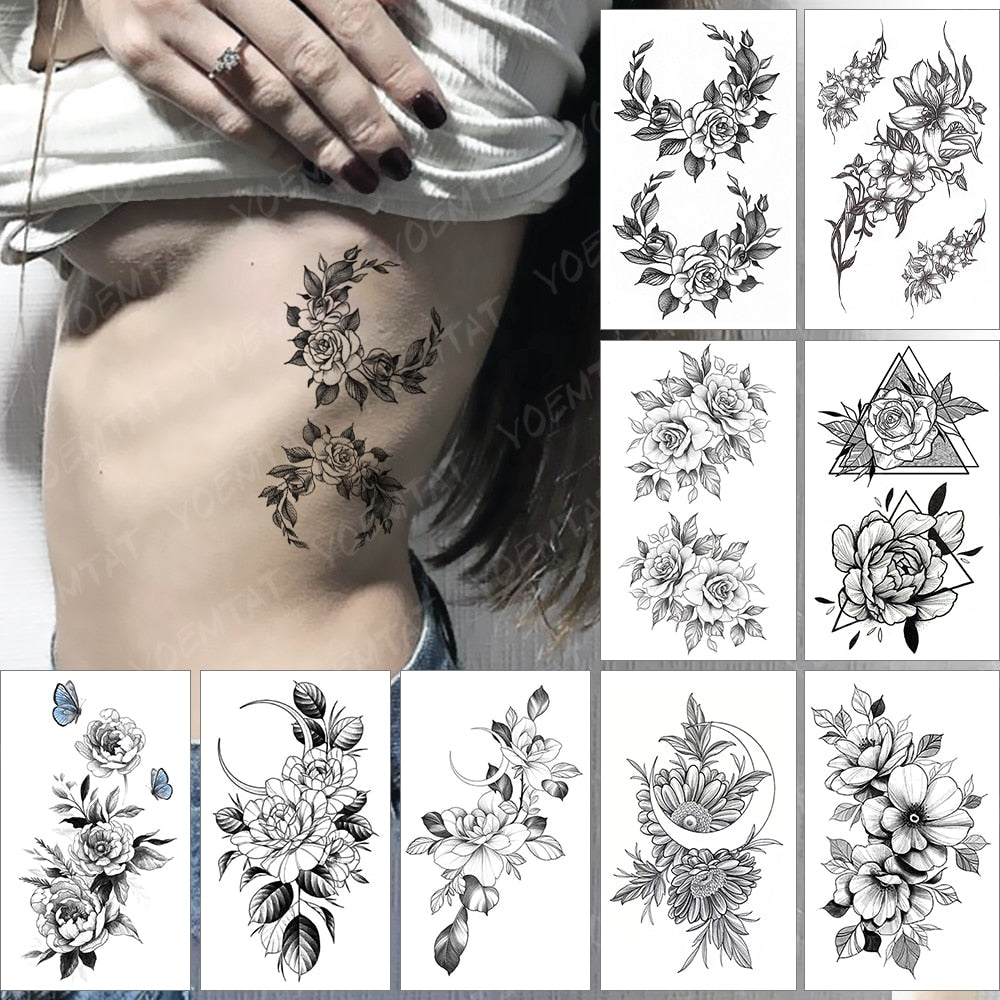 Waterproof Temporary Tattoo Sticker Realistic Waist Ankle Moon Vine Flowers Rose Flash Tatoo Fake Tatto For Body Art Women Men