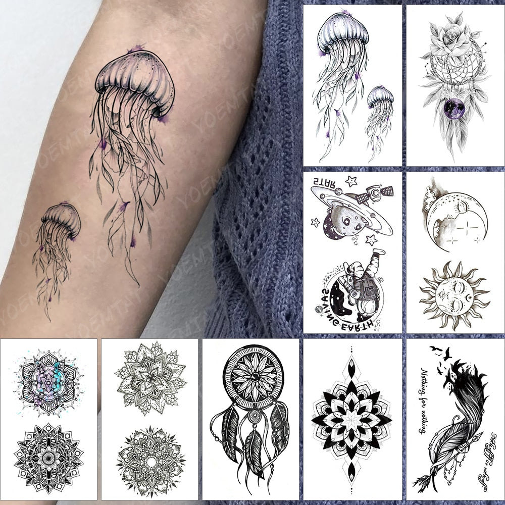 Waterproof Temporary Tattoo Sticker Sea Jellyfish Flash Tatoo Sun Moon Universe Arm Wrist Fake Tatto For Body Art Women Men