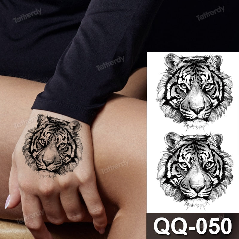 Waterproof Temporary Tattoo Sticker Tiger Lion King Compass Pattern Fake Tatto Flash Tatoo Small Body Art for Kids Women Men