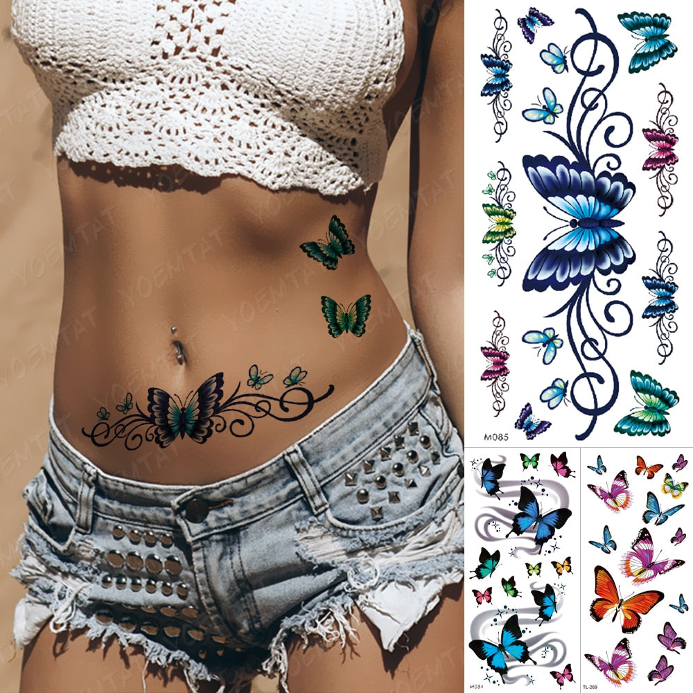 Waterproof Temporary Tattoo Sticker Waist Butterfly Totem Fake Tatto Flash Black Flowers Tatoo Body Art 3d For Girl Women