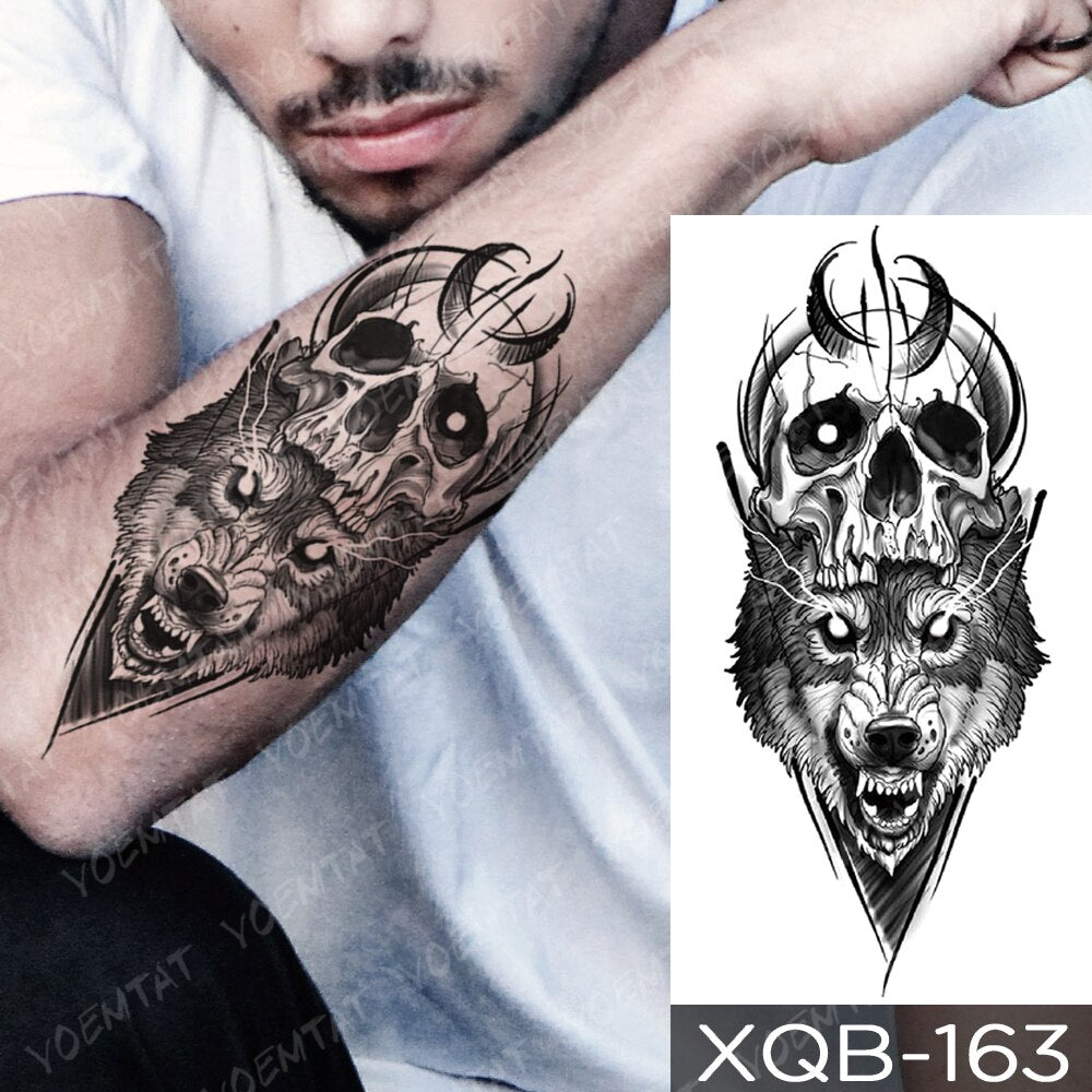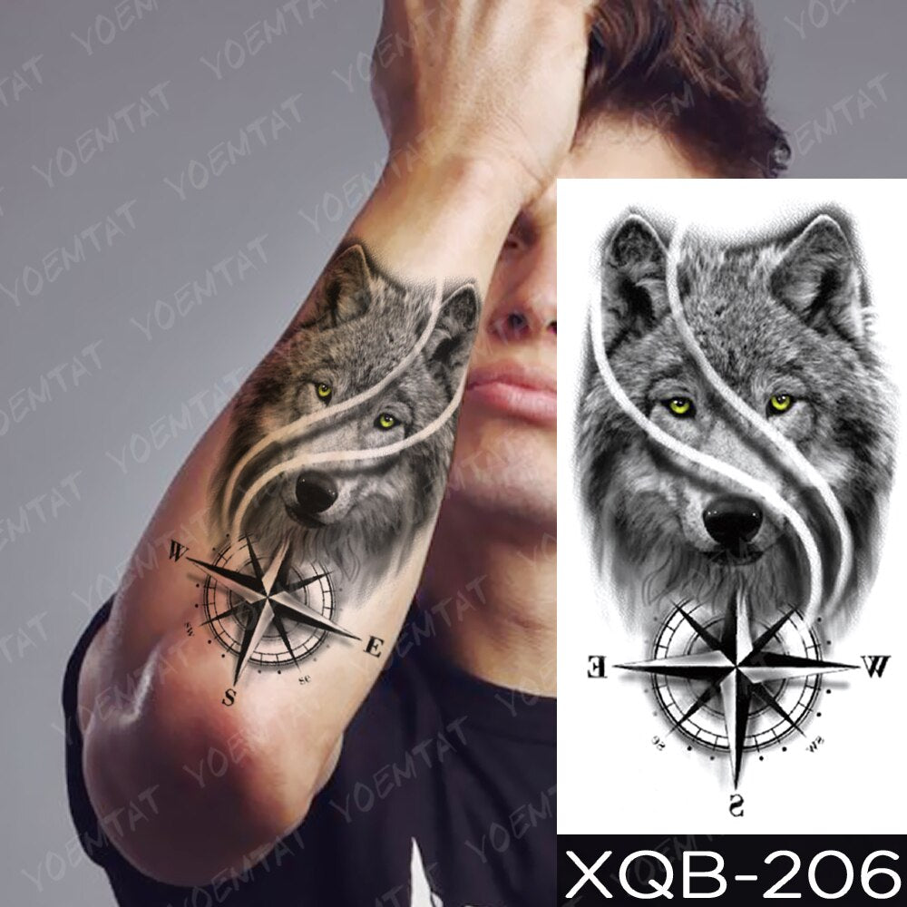 Waterproof Temporary Tattoo Sticker Wolf Tiger Compass Forest Tattoos Moon Bird Skull Body Art Arm Fake Sleeve Tatoo Women Men