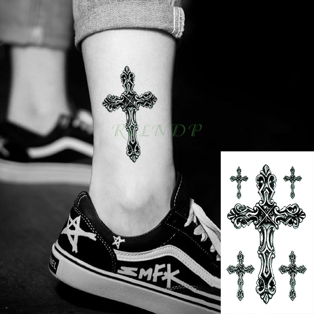Waterproof Temporary Tattoo Stickers Cross Tribal Totem Fake Tatto Flash Tatoo Tatouage Neck Hand Back Foot for Girl Women Men