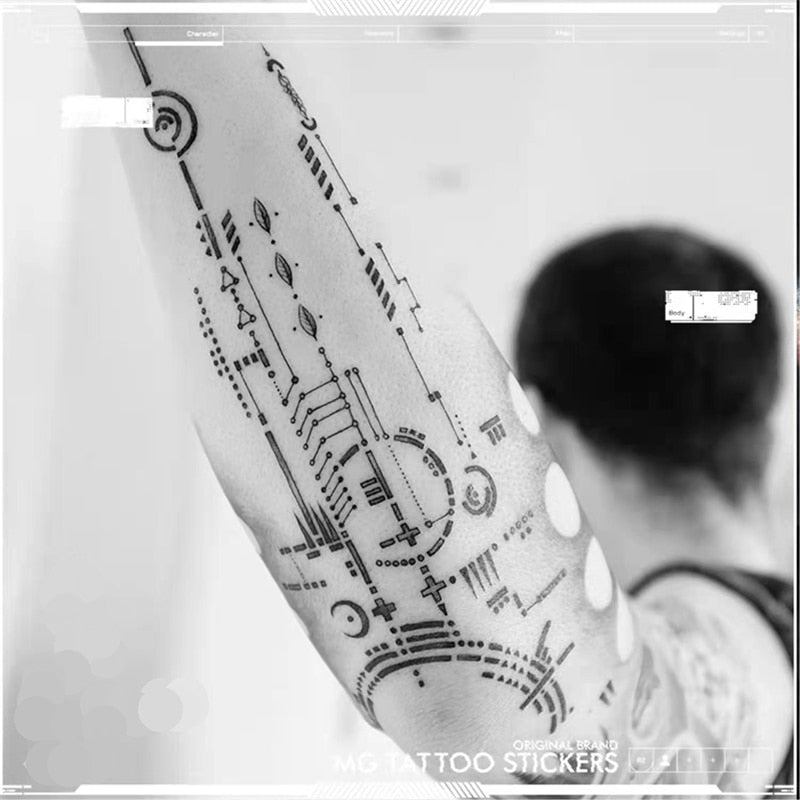 Waterproof Temporary Tattoo Stickers Men and Women Arm Cyberpunk Circuit Board Personality Cool Body Art Fake Tattoo Decoration