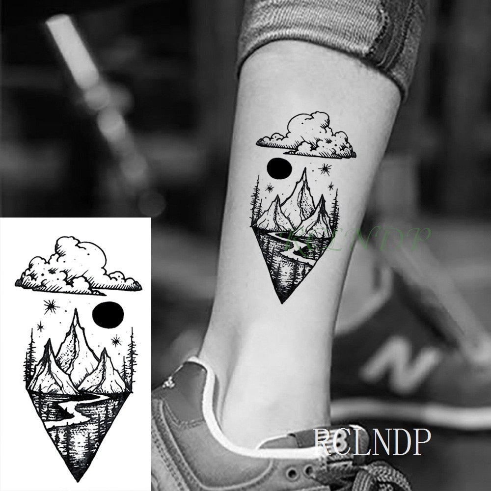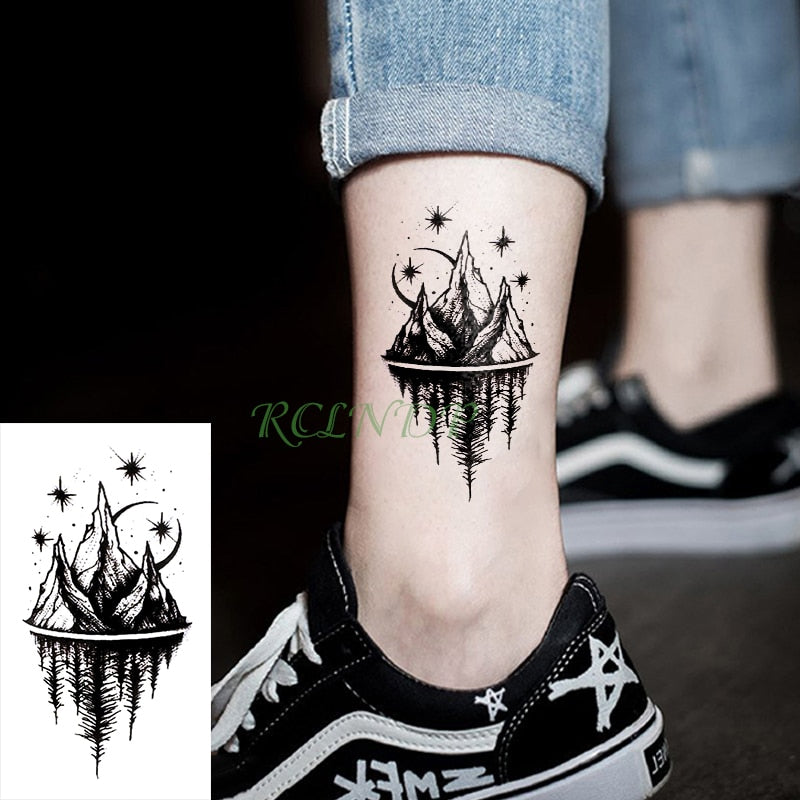 Waterproof Temporary Tattoo Stickers Moon Hill forest star Fake Tatto Flash Tatoo Tatouage Body Art Hand Foot for Girl Women Men